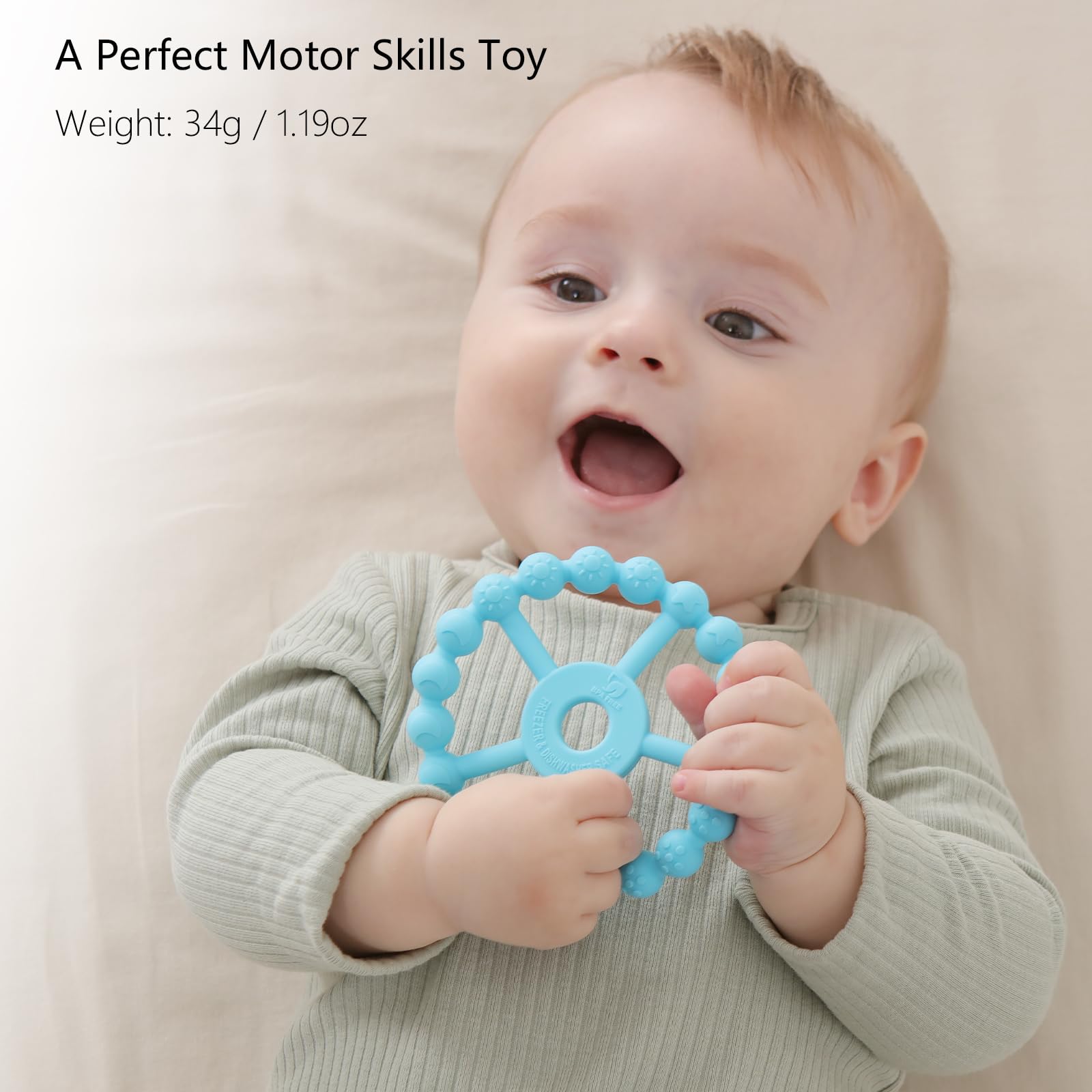 Easy to Hold and Chew: The diameter size and weight of the ring-shaped teether fully consider the baby's finger size and grip strength, as well as the chewing size of the mouth. It is very suitable for teething babies, and can also be used as a grasping toy to exercise the baby's motor skills and hand and body flexibility.