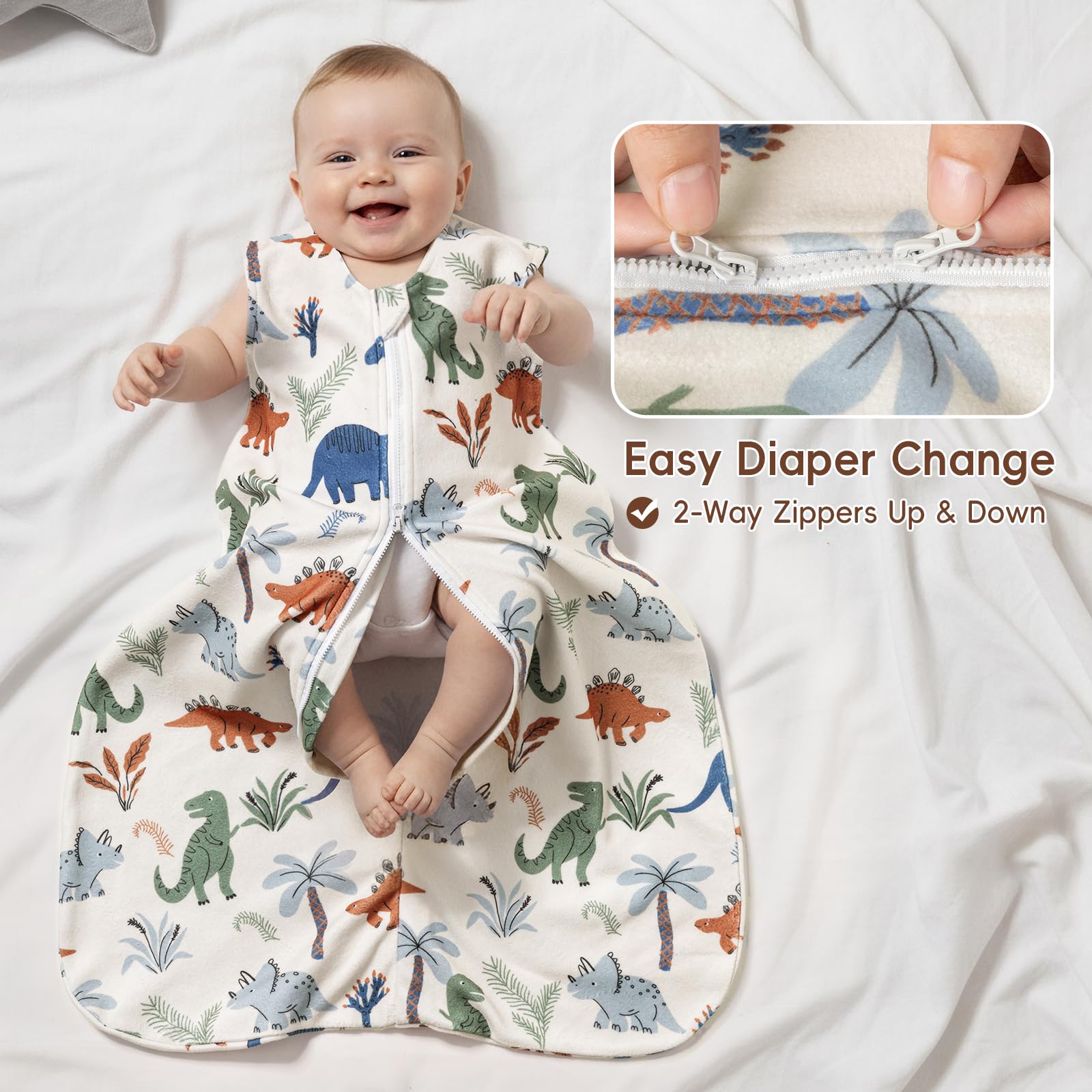 Generous Bottom Space and 2-way Zipper: Our sleeping bags have generous bottom space that allows your baby to kick and move their legs freely. The 2-way zipper makes it easy for you to change your baby's diaper. Our sleep sacks come with protective layers that prevent the zipper from accidentally scratching your baby. The sleeveless design allows free movement of your baby's arms, making it easier for them to roll over and sleep comfortably.