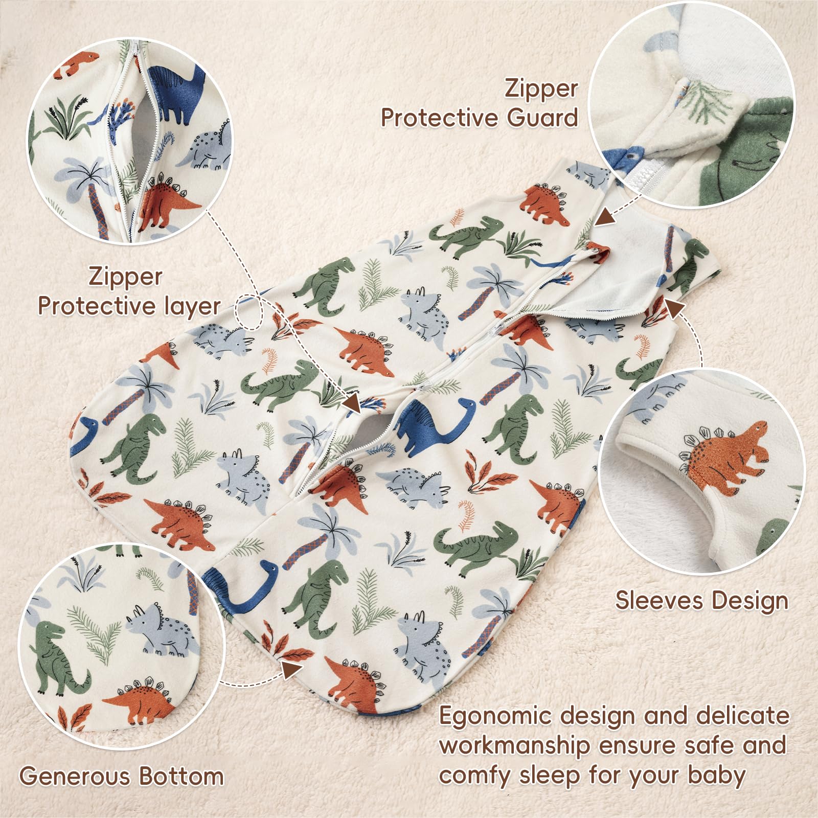Our baby wearable blankets are made of 100% polyester micro-fleece that is very soft and gentle on babies' delicate skin. The skin-friendly fabric with 1.5 TOG makes them the perfect choice to keep your little one warm and comfortable during cold winter nights. Our baby sleep sacks are breathable and moisture-wicking, so your baby can enjoy a full night of restful, uninterrupted sleep. Our baby wearable blankets are Essential Baby Item for everyday use.