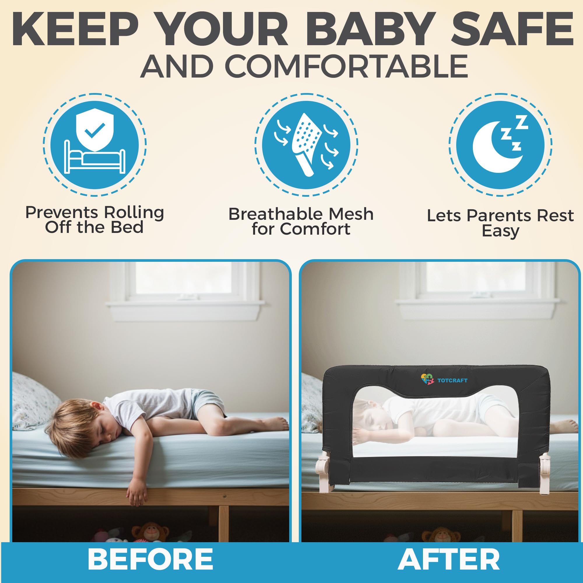 【TotCraft Is all about Quality 】: Don’t hesitate to invest in your little ones safety! Most cheap products last few weeks. We offer high quality bed rails so buy with confidence!