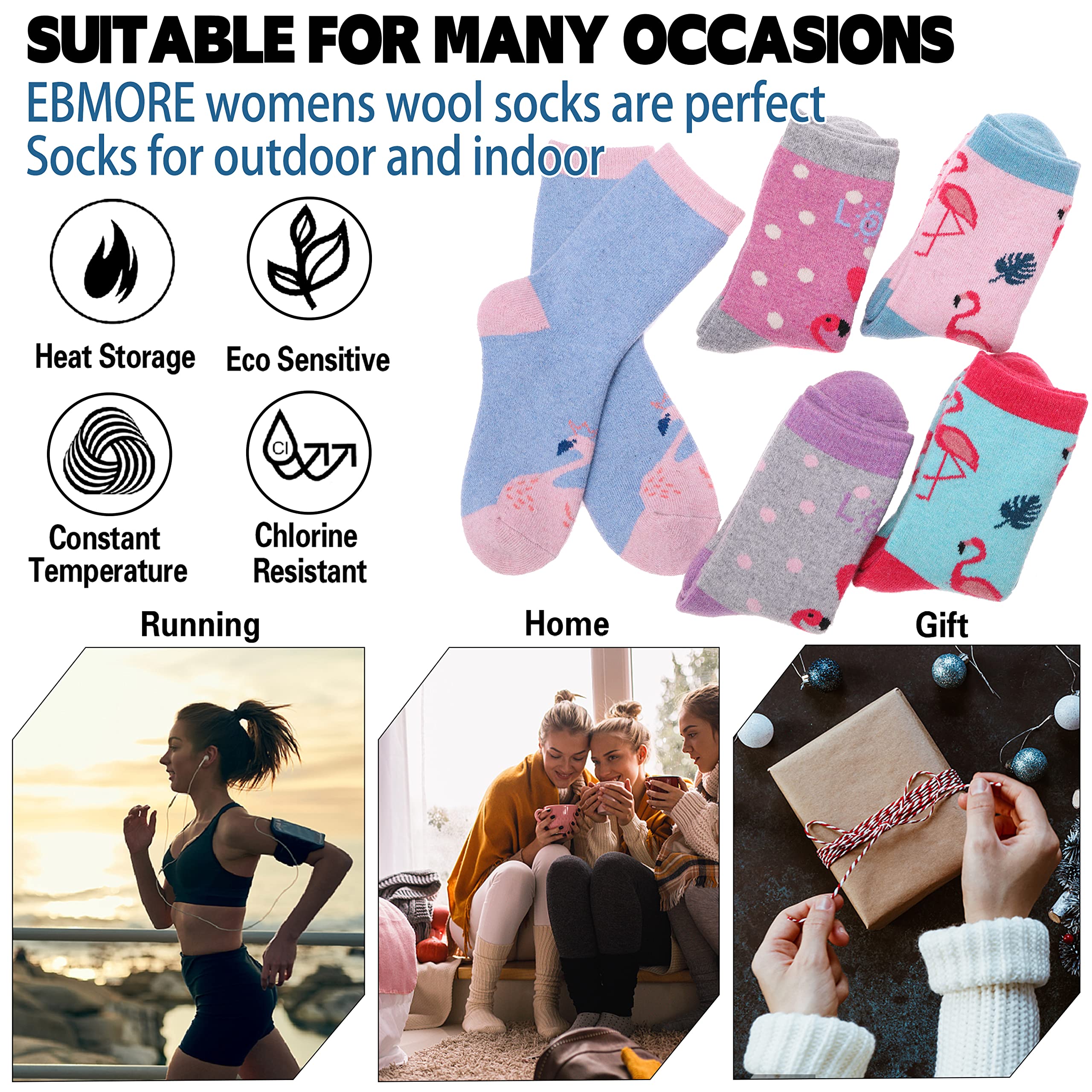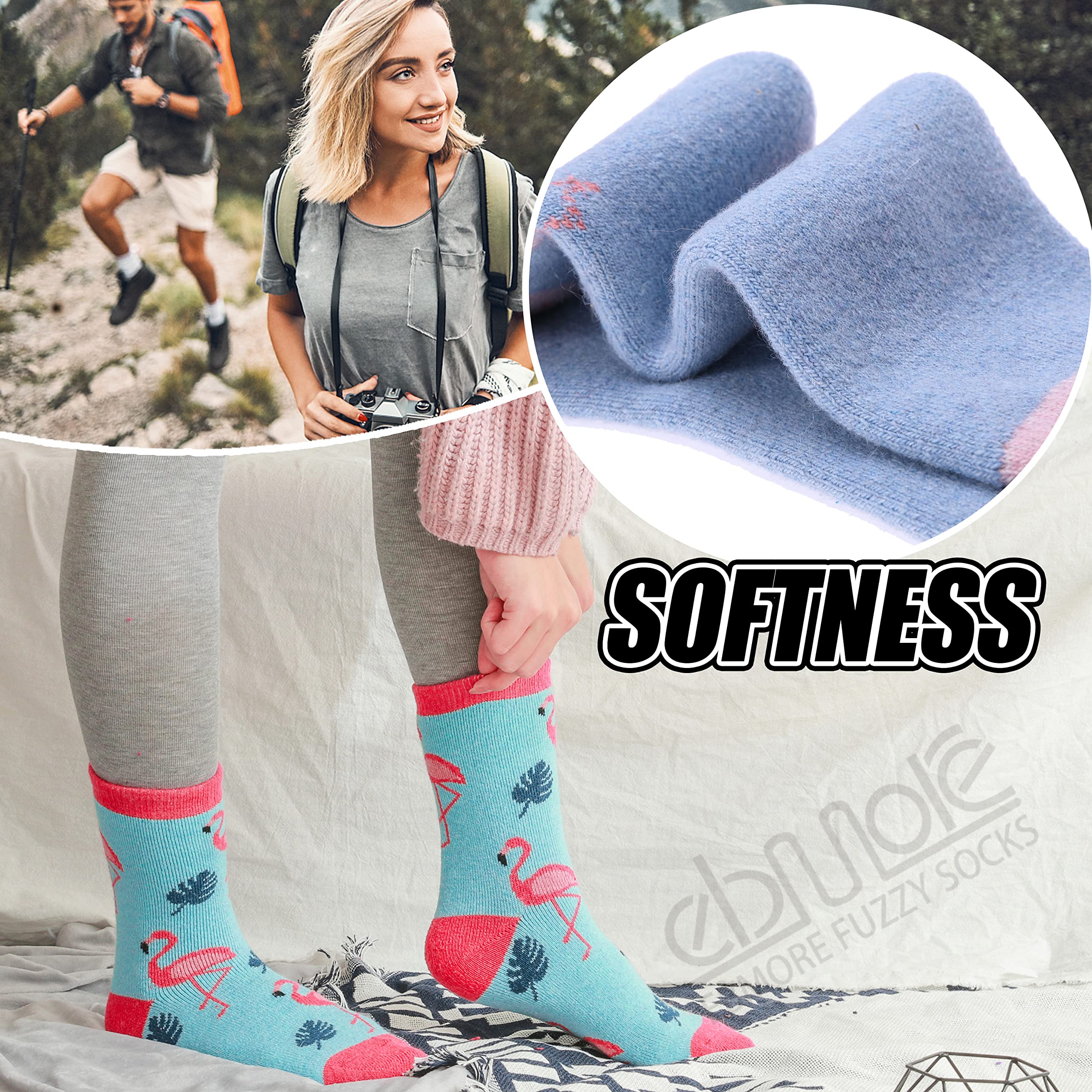 HIGH QUALITY : EBMORE fashion women wool socks are blend of 55% Wool, 25% Cotton, 15% Polyester, 5% Spandex. It’s a premium High Quality merino wool socks, so the socks is very soft, heavy but breathable, cozy, fuzzy inner lining and will keep your feet comfortable and warm.