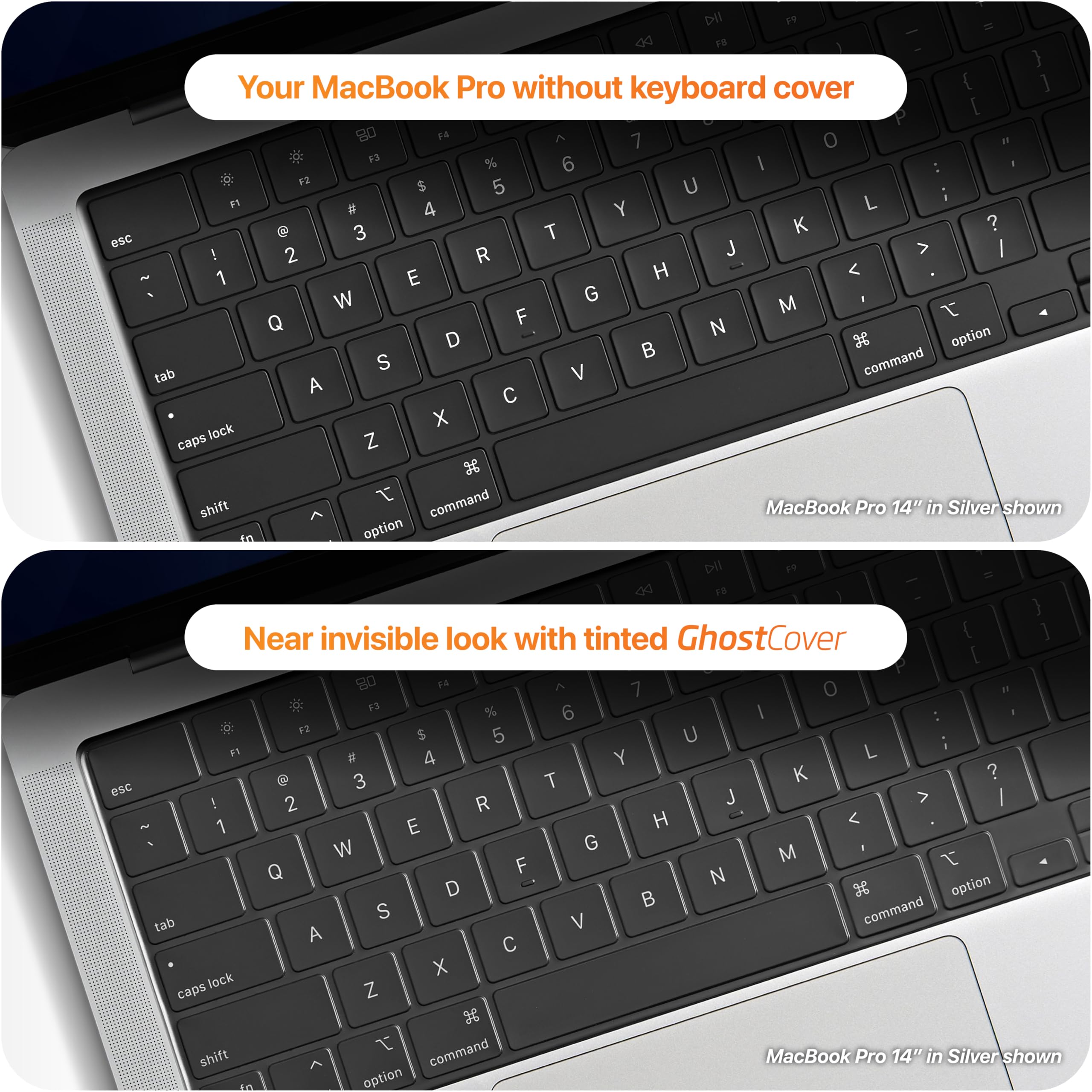 Introducing industry's first tinted keyboard protector! Made with gray tinted Thermoplastic Polyurethane (not silicone), GhostCover provides unobstructed protection for your Macbook keyboard against spills, dust, and other contaminants.