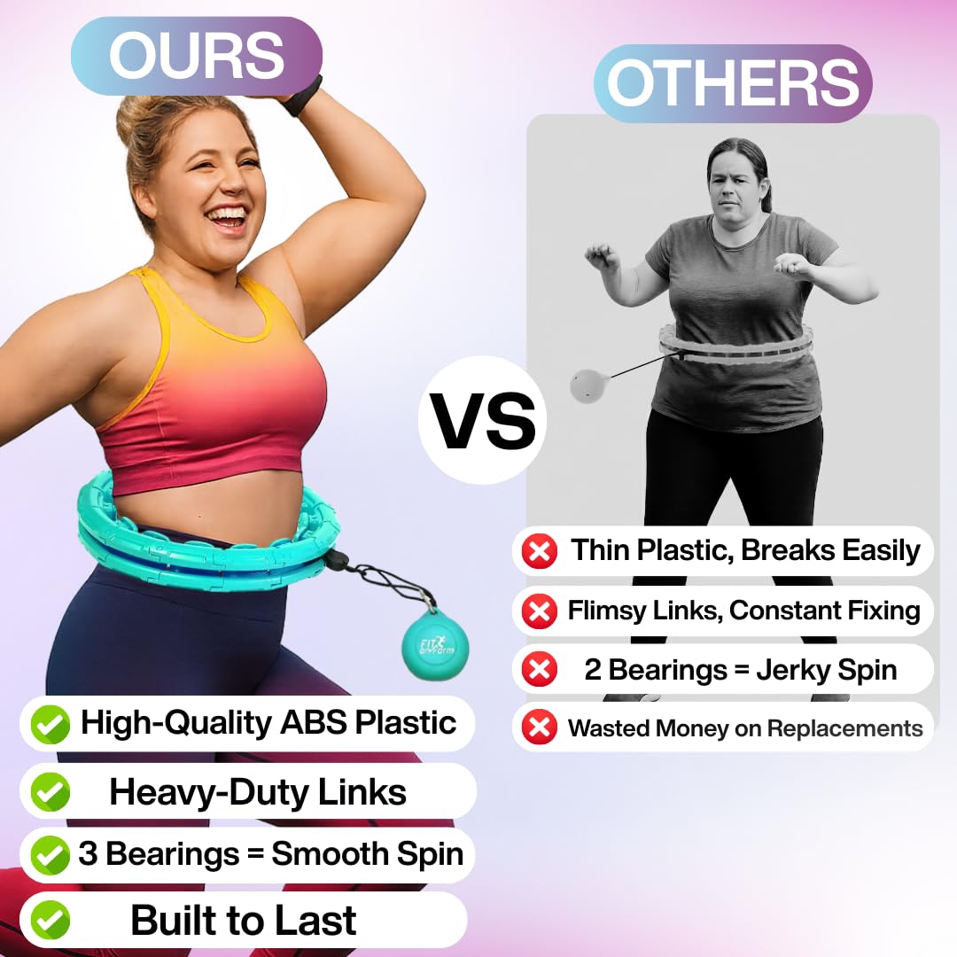 No More Hurt - With the focus on premium quality and safety, our weighted hoola hoop has been finished to the highest standard and smoothness and is made of hard ABS plastic and soft silicone balls fully enclosed with iron sand materials to avoid leaking.
