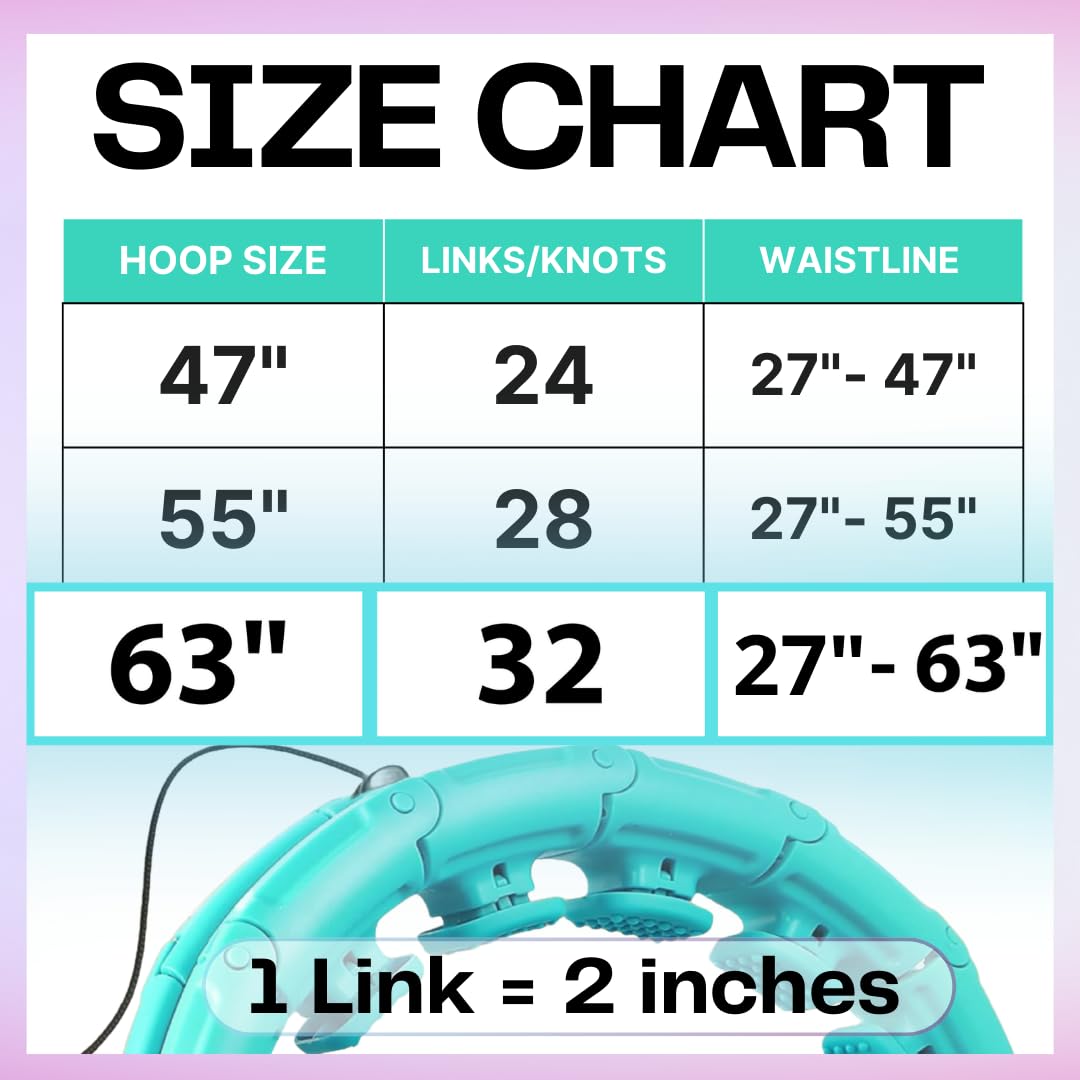 Fits All Sizes And Shapes - Our fitness hoop consists of 32 detachable knots which can be adjusted easily according to your waistline, suitable for waist sizes up to 63 inches.