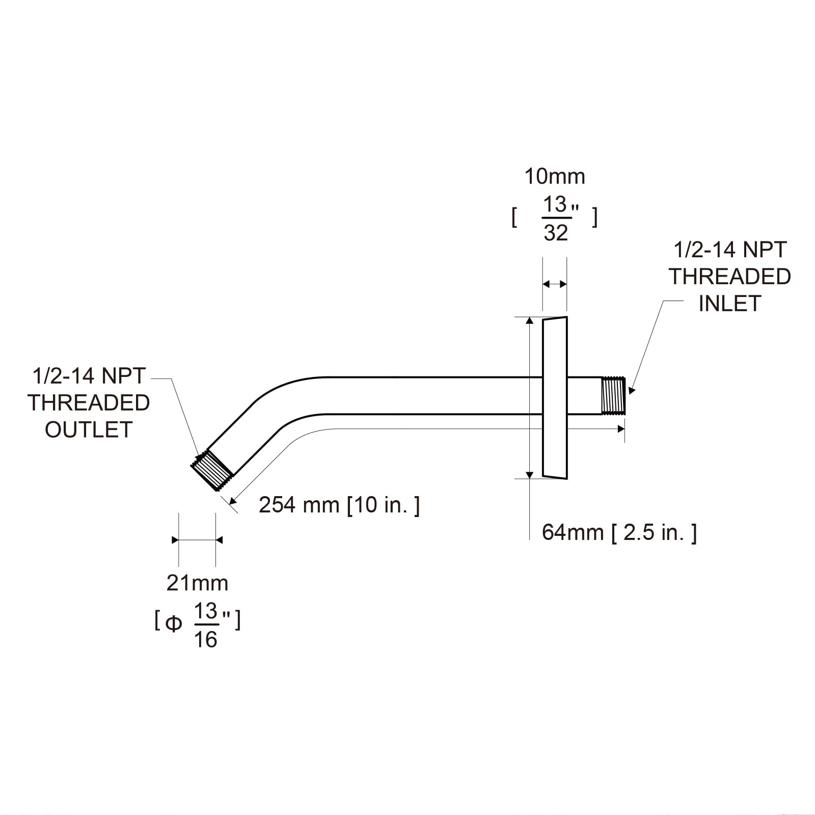 [Installation and Specifications] Detailed instructions ensure worry-free installation. The product is 6 inches long, the thread specification of inlet is 1/2"-14 NPT, suitable for standard shower pipes. The thread specification of outlet is 1/2"-14 NPT (compatible with 1/2" IPS thread), suitable for sprinkles of standard interface.