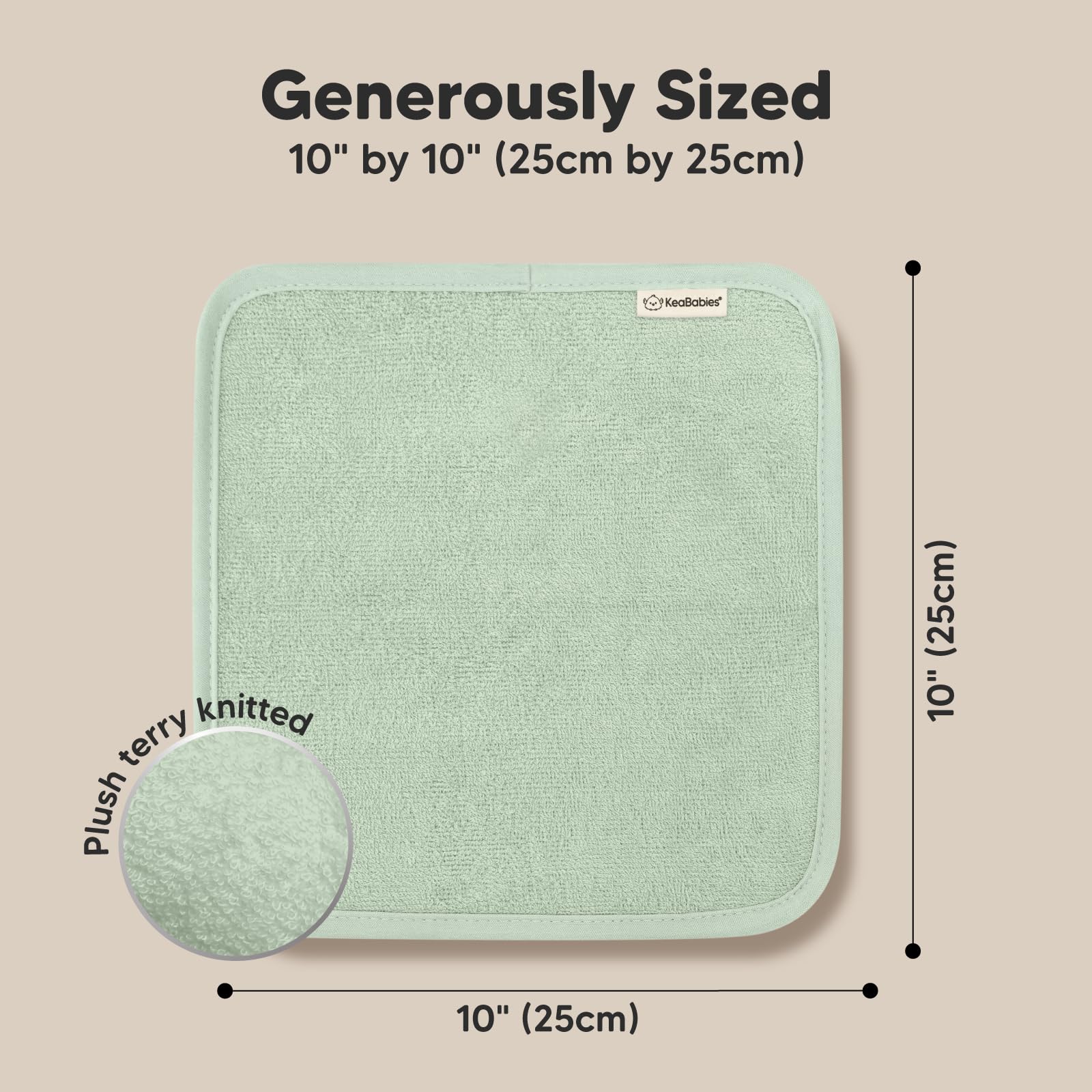 6-Pack KeaBabies Baby Wash Cloths - Sized at 10"x10" (25x25cm), these ultra-soft, 500GSM premium viscose derived from bamboo wash cloths for babies are perfect baby bath essentials.