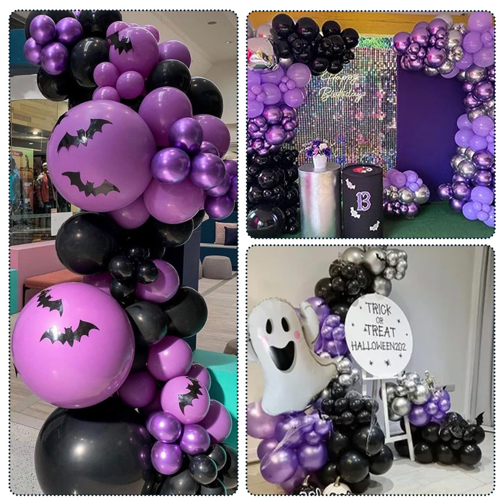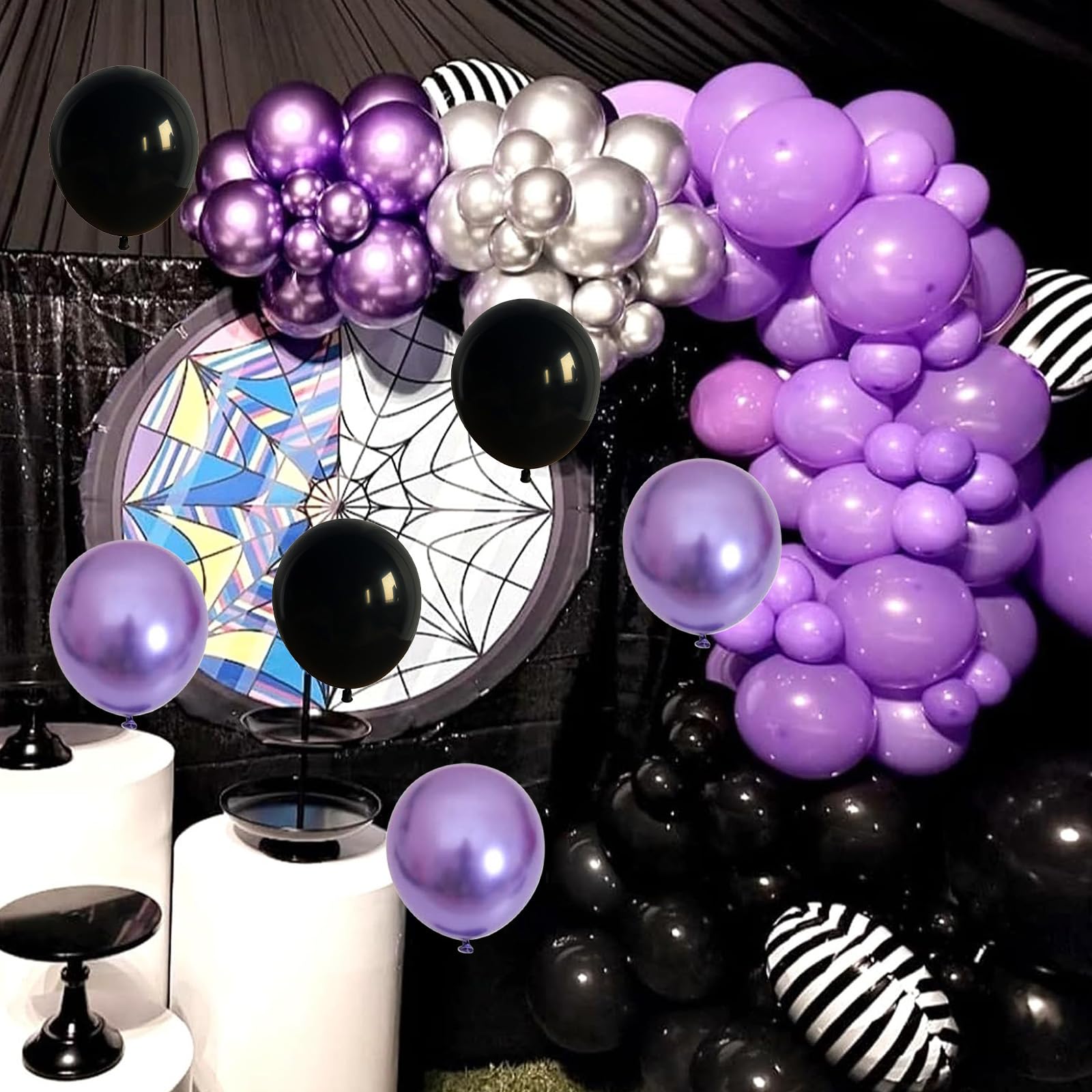 💜 🖤Wide Application: Balloons are very suitable for halloween, birthday, graduation, weddings, company events, photo shoots, etc. Decorate any indoor or outdoor party as a photo booth background and create lasting memories.