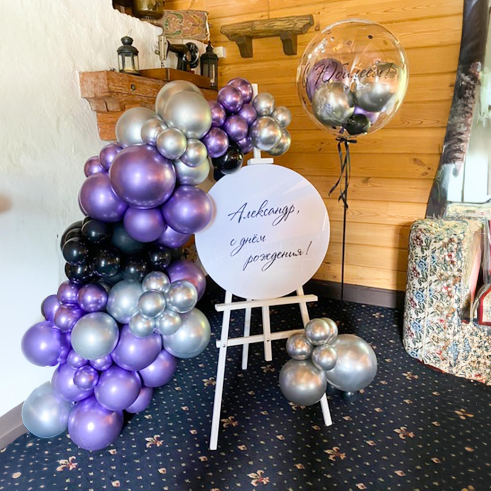 💜 🖤Easy to Assemble: Blow them up with a mouth, pump or helium. If you want them to float, make sure to fill them with pure helium.