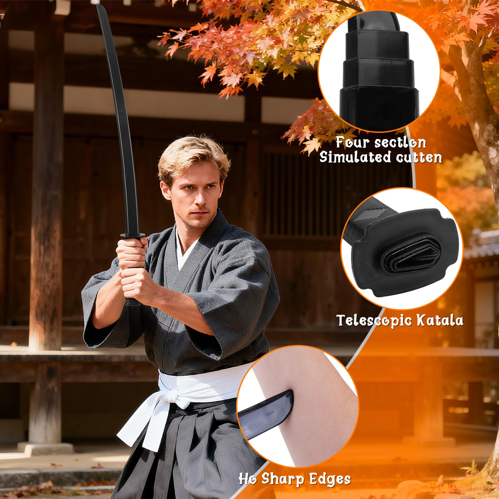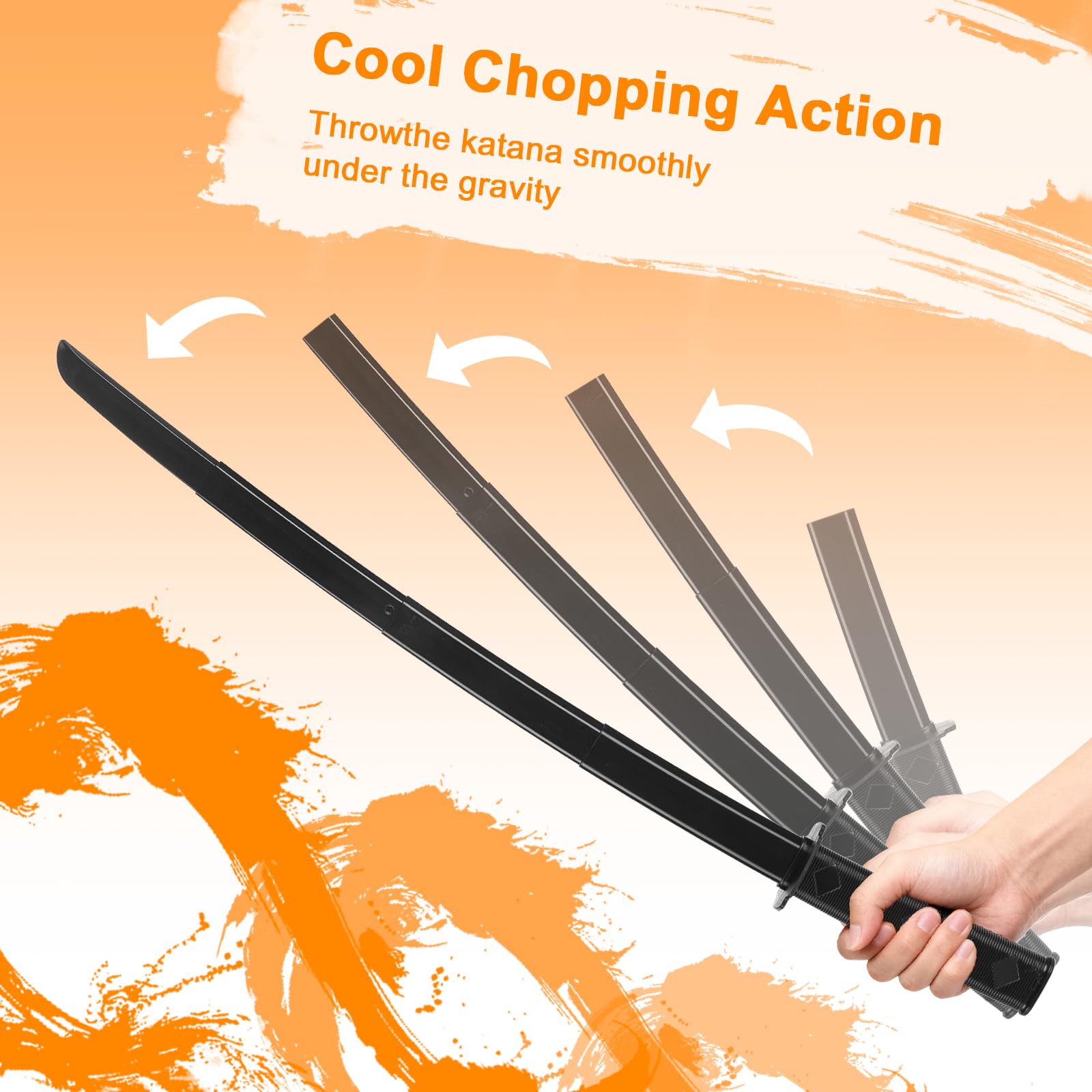 Material and Size: This retractable katana sword is crafted from plastic using 3D printing technology, ensuring lightweight construction without sharp edges to prevent accidental injury. The plastic gravity fake sword extends up to 29 inches in length, featuring an ergonomic handle design suitable for both boys and adults