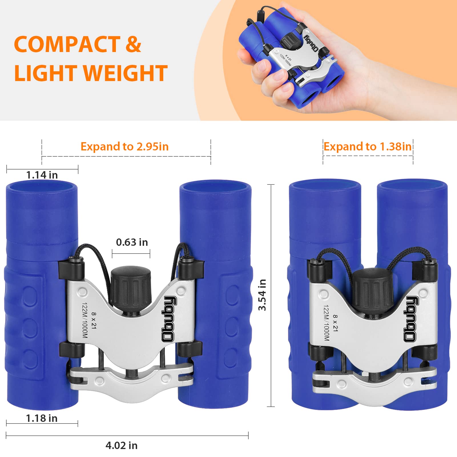 โProfessional Real Binoculars: Easy to focus, the leaves of a tree 122ft/1000 yards away came into sharp focus. The compact binocular can be adjusted by turning the center knob to easily match the eye distance gap for each child.