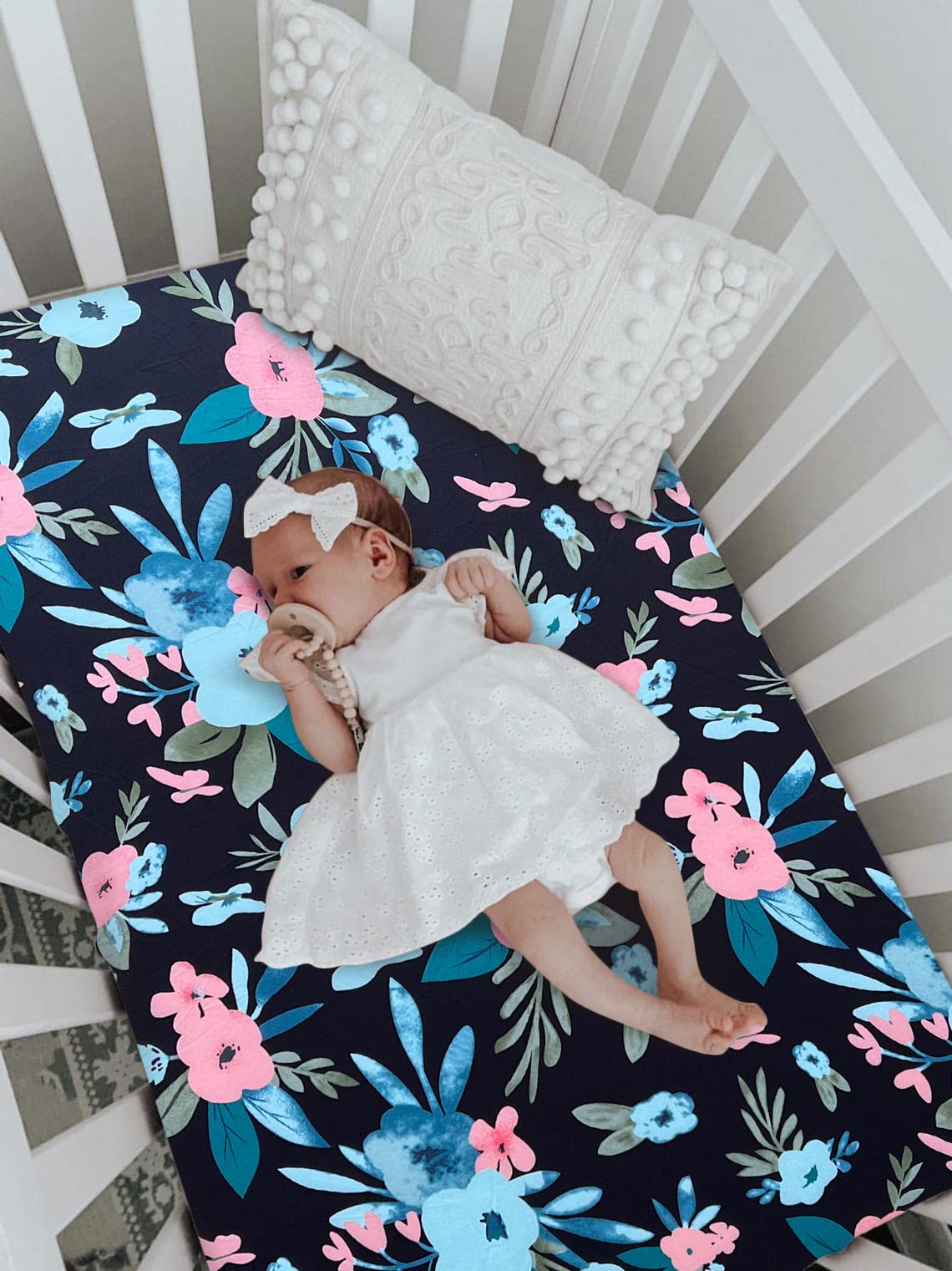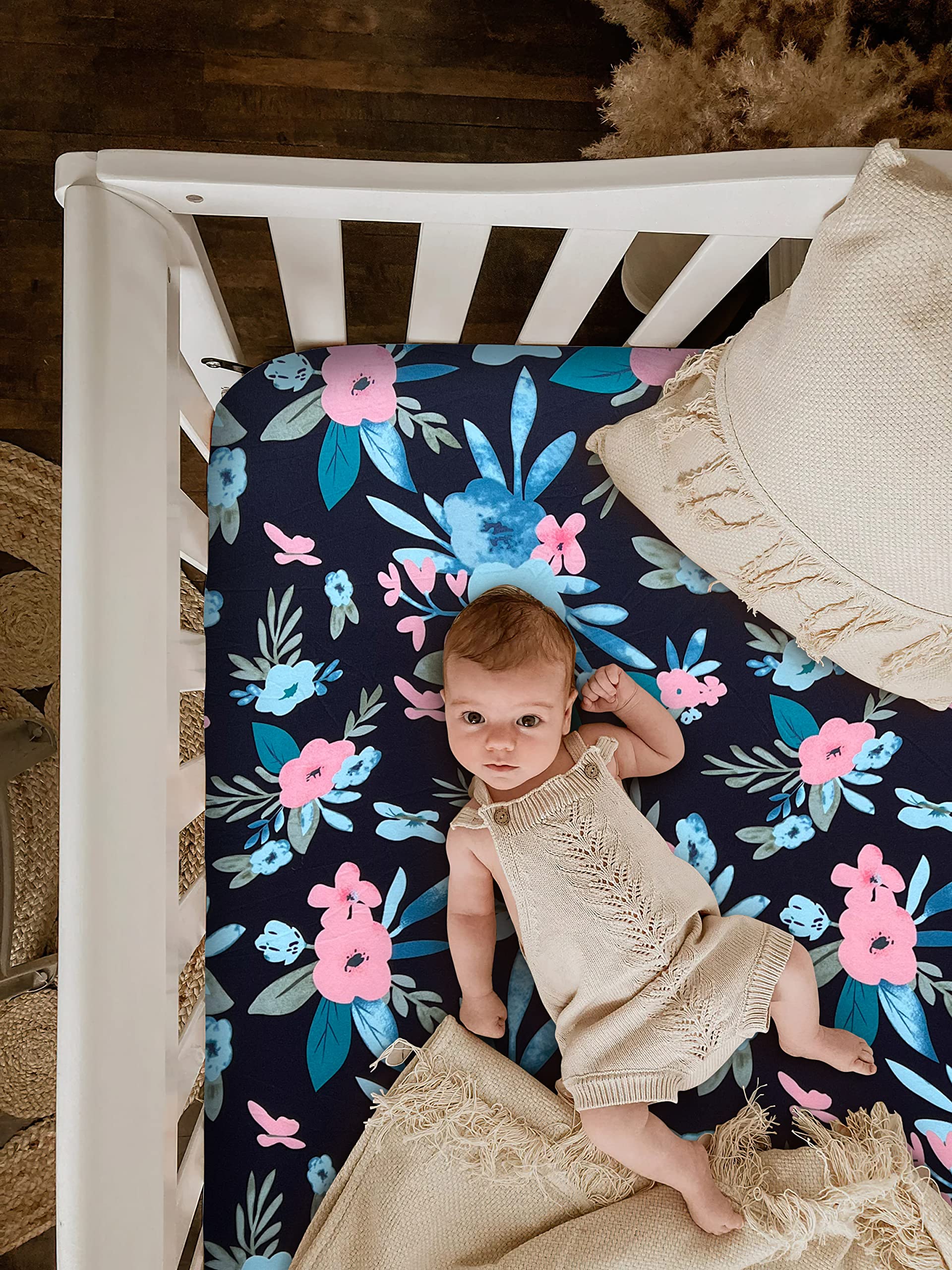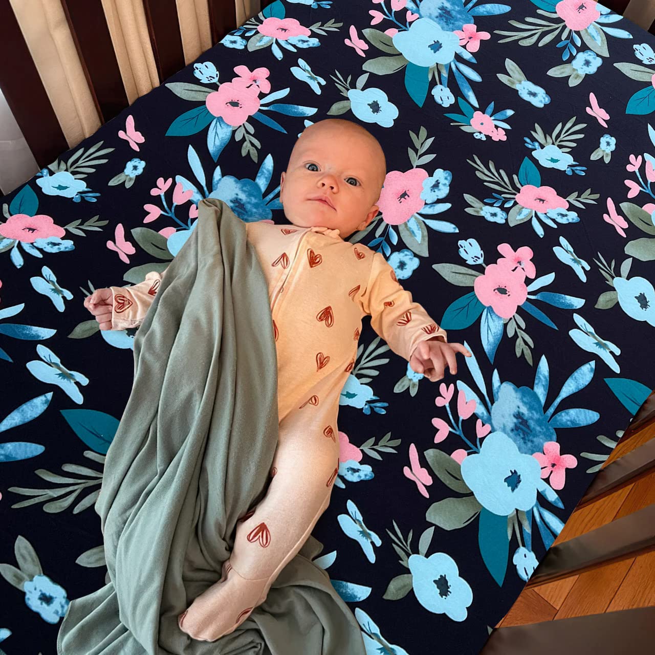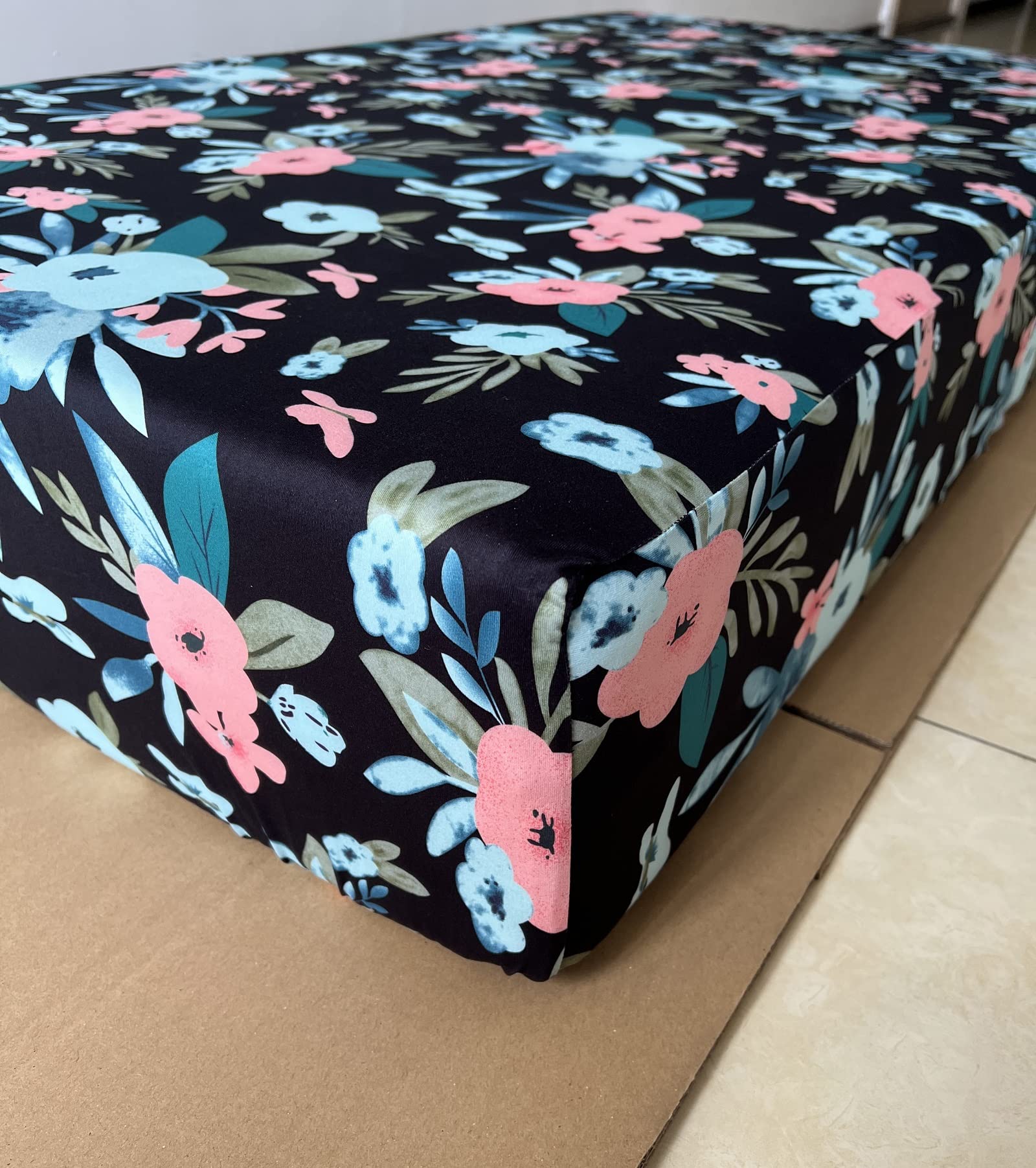 Sized for a standard sized crib or infant mattress 52”x 28”. Reinforced elastic lining for easy stretch and smooth fit!