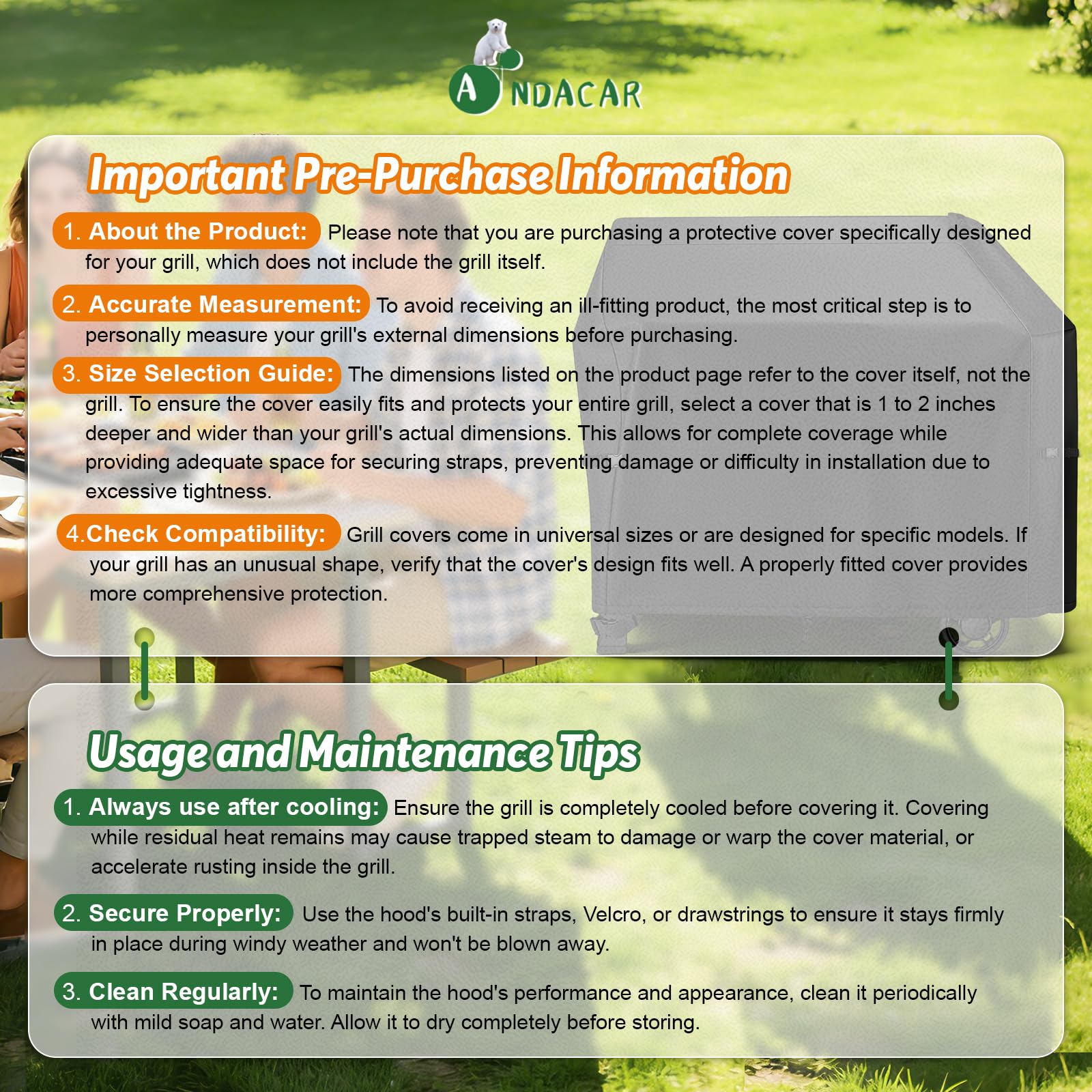 COMPREHENSIVE PROTECTION: Provides a powerful guard against any weather: snow, dust, rain and wind etc; Extend grill lifespan.