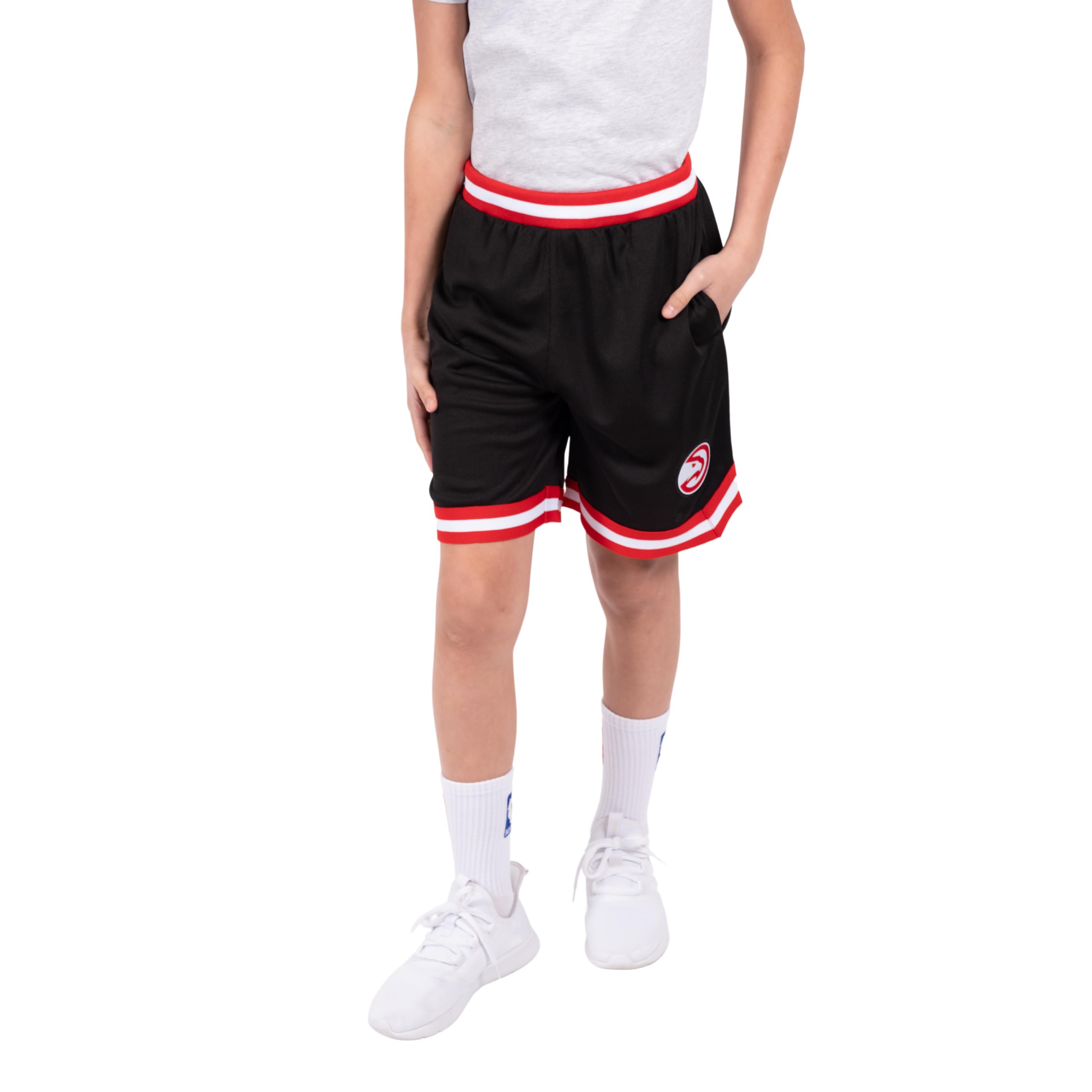 FUNCTIONAL AND STYLISH DESIGN: a black body create bold color contrasts with NBA team logos. Useful additions include two side pockets and a loose fit for unrestricted movement.