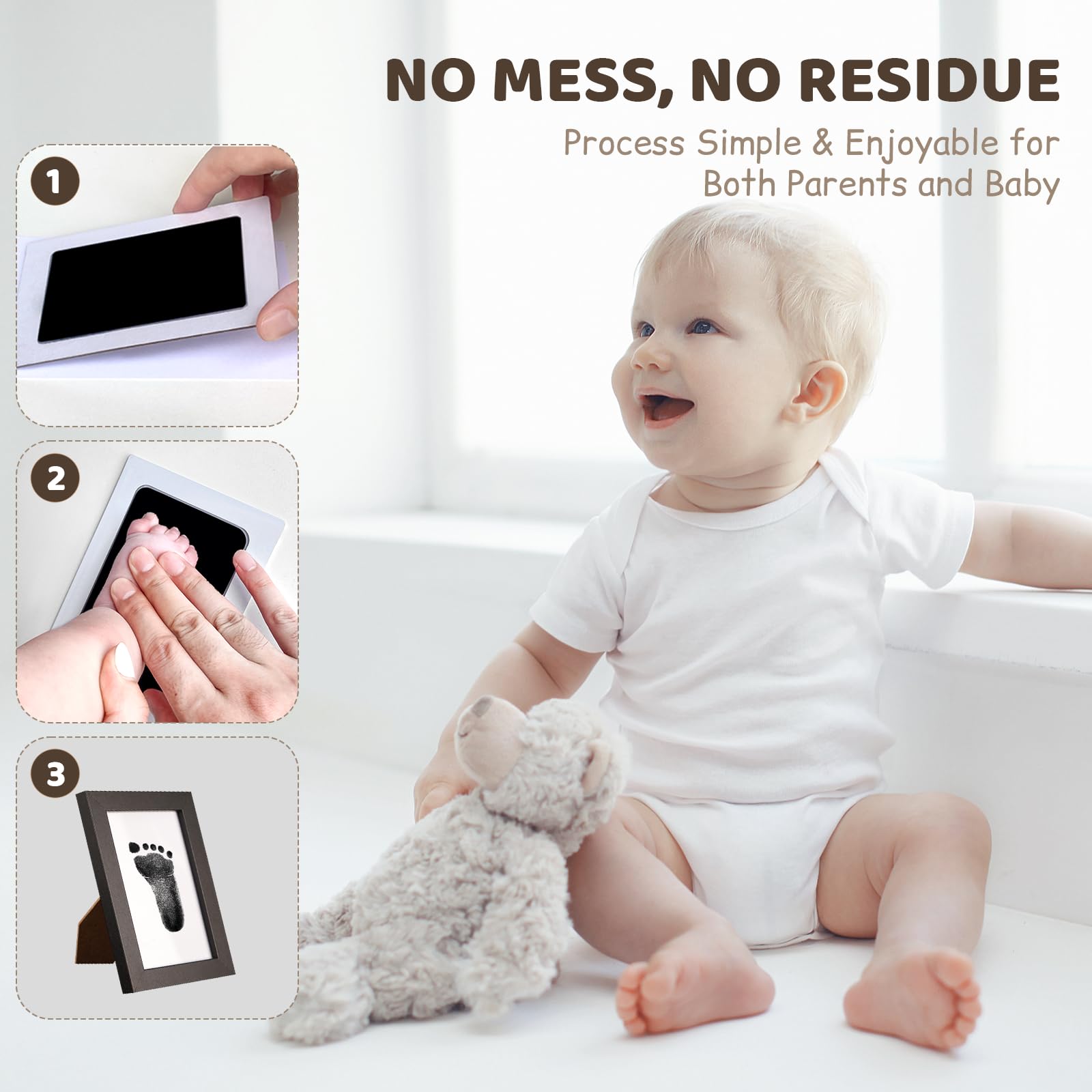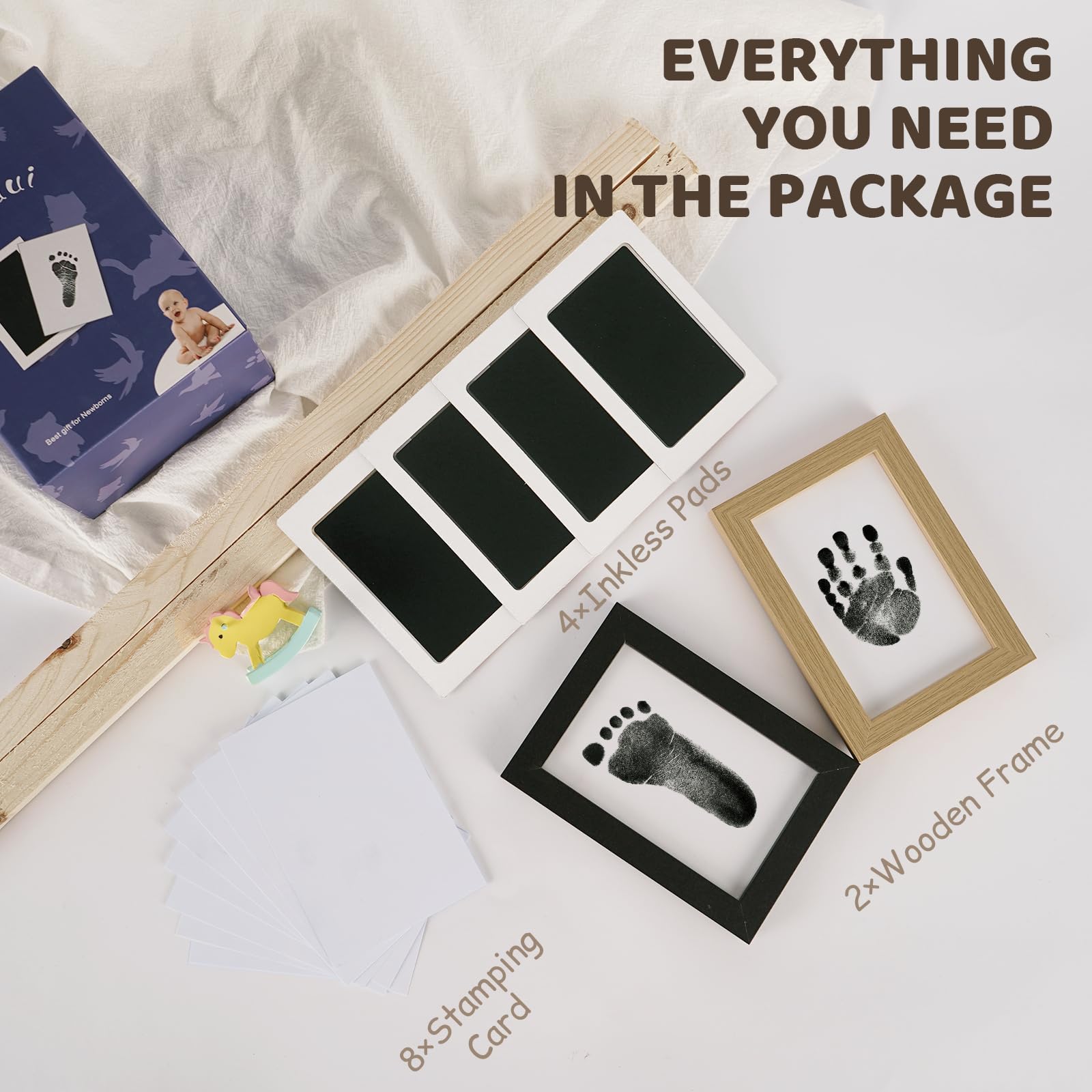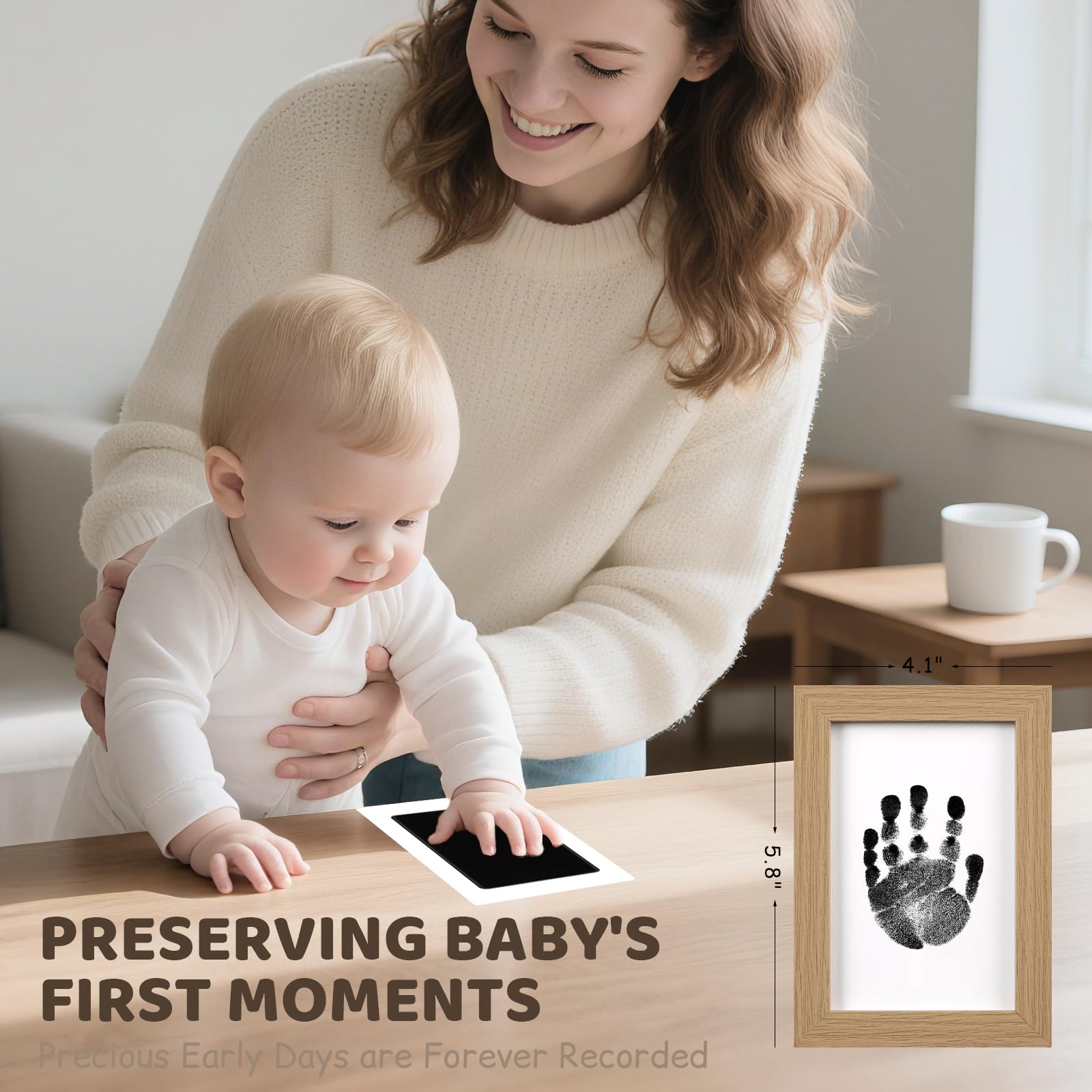 💝 [Perfect for Preserving Baby's First Moments]: This baby footprint kit includes 4-park high-quality baby footprint ink pads and 2 elegant nursery picture frames, allowing you to create adorable handprint and footprint keepsakes. Whether you’re creating a memory for yourself or gifting it to new parents, this baby keepsake set ensures that those precious early days are captured forever.