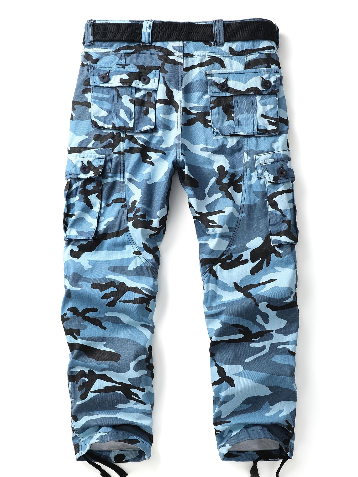 Product features: The men's cargo pants is built with fashion and comfort in mind,sits at waist,relaxed fit, the straight leg openings with drawstring tie to fit with boots, and be great for hunting pants,camping pants, working pants, tactical style, costume pants. Also,The casual work cargo pants you were wearing didn't rip even as you walked over briars because to the double-thread sewing,durability, ripstop, and scratch resistance.