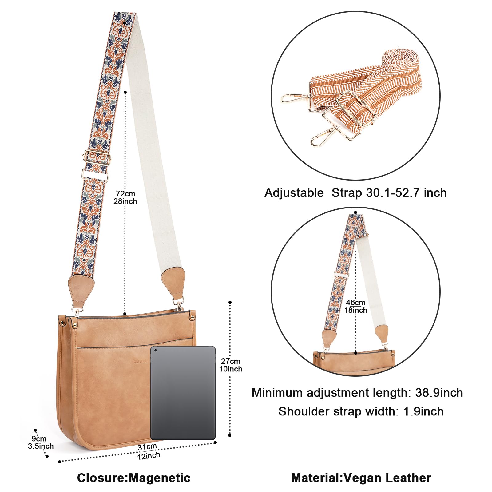 ✔【2-PCS Adjustable Removable Straps】Each CAITINA women's hobo handbag is equipped with 2 adjustable removable crossbody wide shoulder straps :1 weaving shoulder strap + 1 boho style strap,crossbody bag internal use fabric lining and high quality gold hardware,Also the strap is equipped with a gold metal clip attachment for easy clipping to any ladies cross body bag,that can be easily changed out quickly to give your bag a different look.