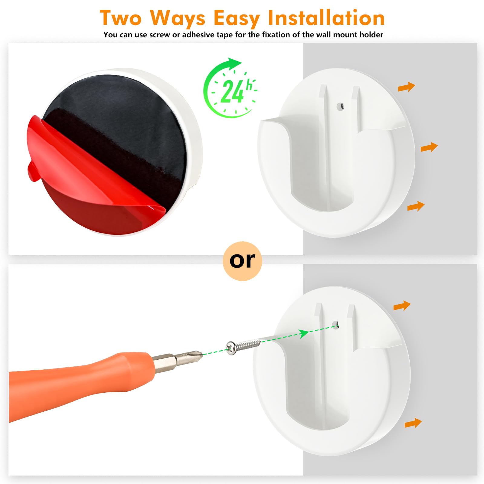 Two Ways Easy Installation: You can adopt screws or adhesive tape for the fixation of the wall mount holder. If you choose to use adhesive tape, simply stick the bracket onto a smooth surface and wait for 24 hours before installing the camera.