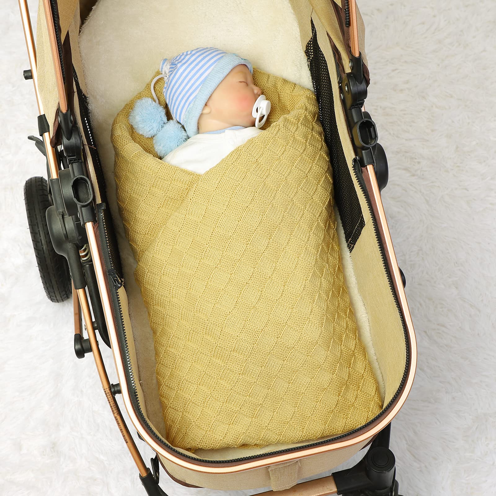 Timeless Cable Pattern & Colors: Delight in the beauty of the checker-pattern cable knit and the 11 delightful colors(light green, dark green, dusty blue, yellow, grey, pink, white, blue, brown, beige, and classic green), adding timeless elegance and childishness to this breathable baby blanket, match any nursery theme or personal style.