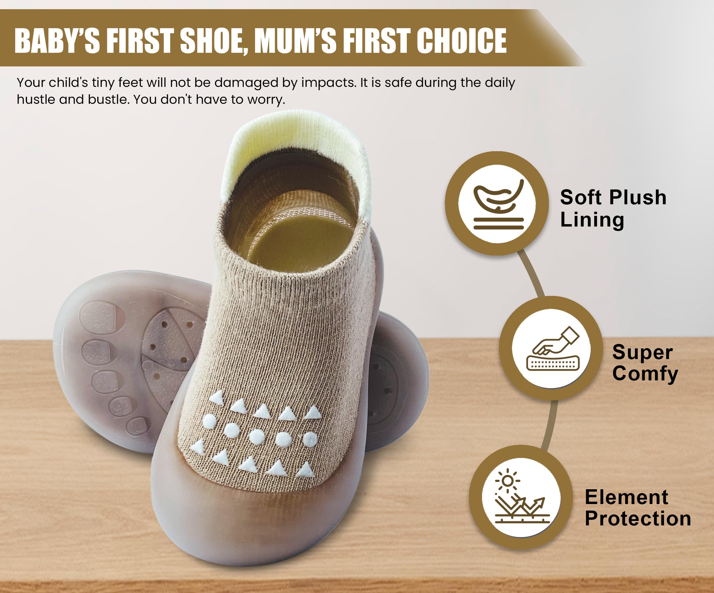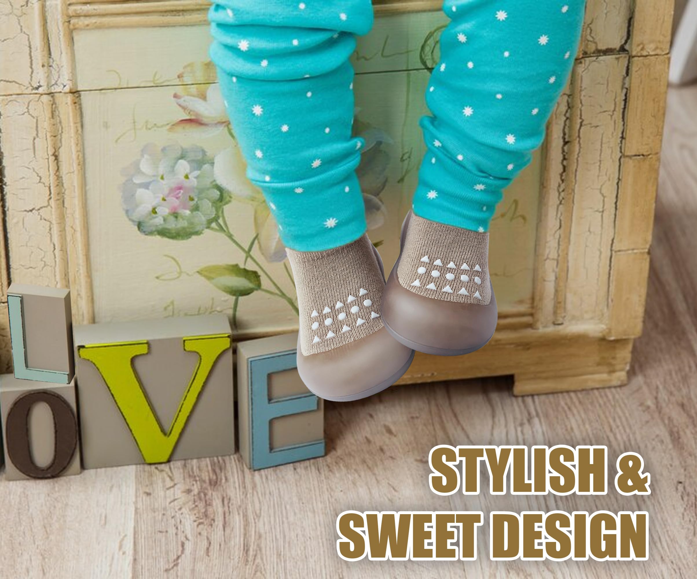 NON SLIP - Sock shoe sole is made of non-slip silicone material. In addition, thanks to baby walking shoes design, it touches the ground flat. It allows your toddlers to walk safely on different surfaces. At the same time, baby sock shoes prevent damage from sharp objects on the ground.