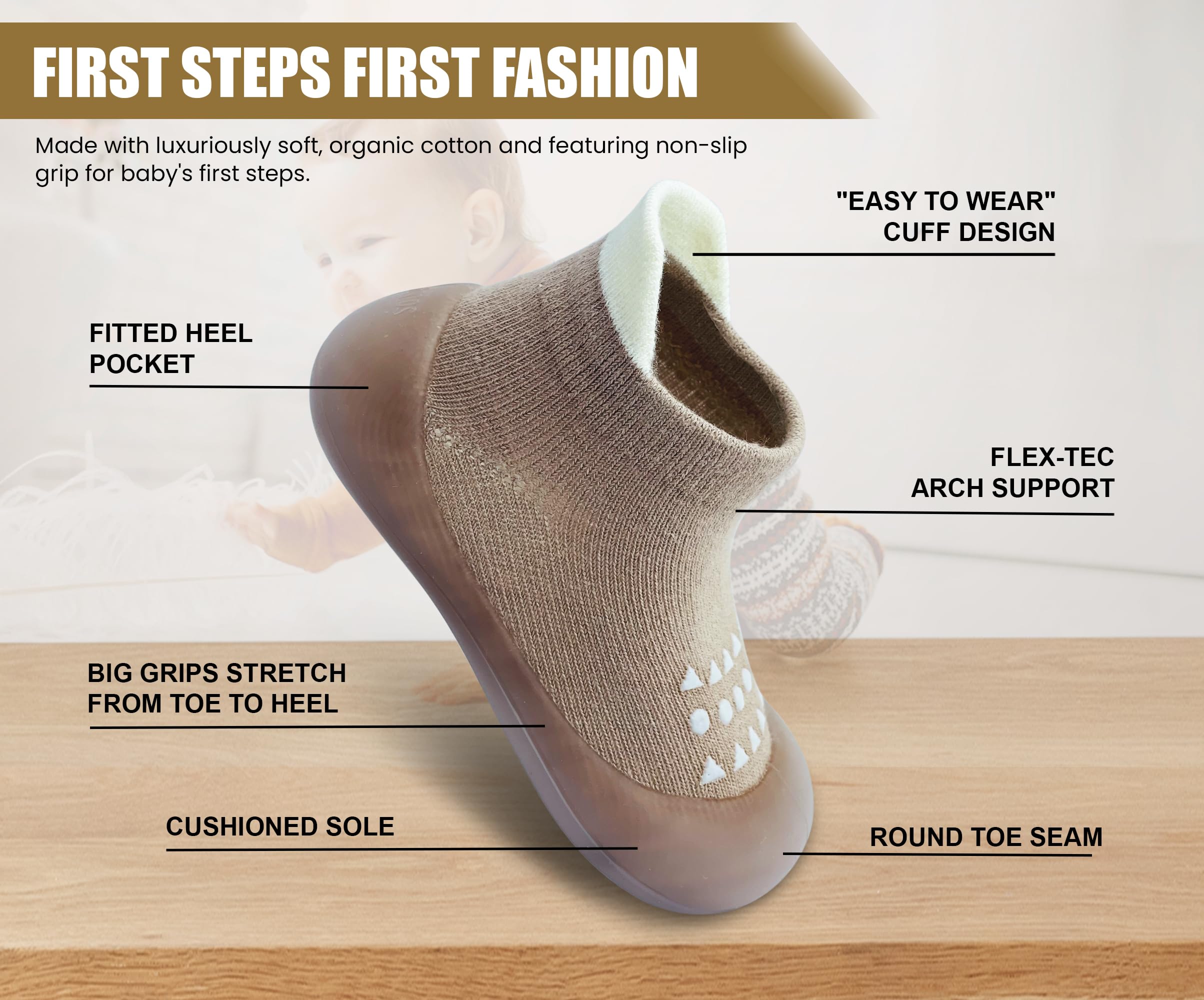ELASTICITY - The sole of the sock shoes toddler is made of silicone material and is designed to easily adapt your baby's foot movements. The flexible upper part made of knitting, gives the comfort of socks to the shoes. It is very easy to put on and off. It is comfortable, at the same time it does not come off. Your boy or girl can take the first steps with confidence.