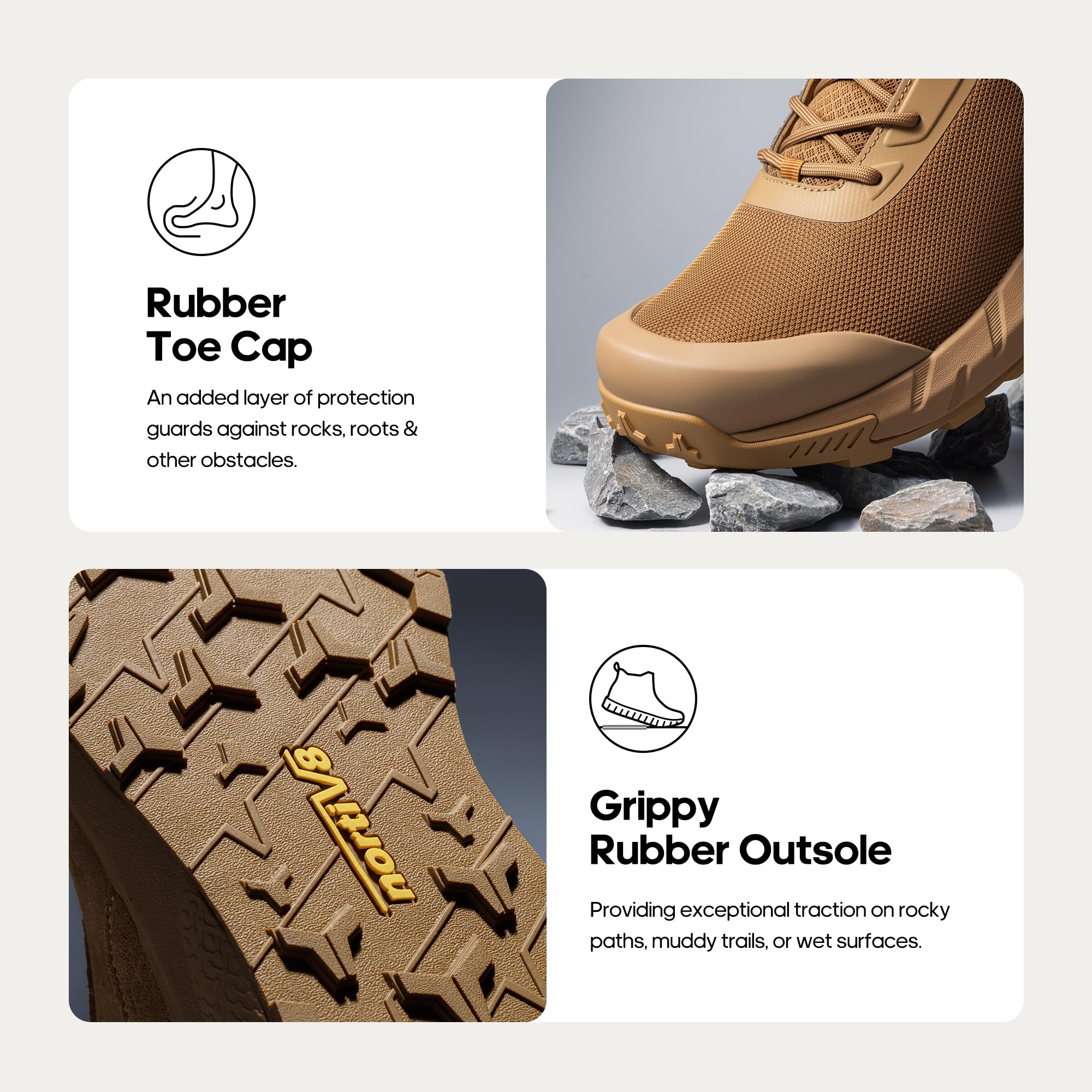 Waterproof Protection: Equipped with a built-in waterproof membrane, these outdoor boots for men protect your feet against moisture, rain, and snow, allowing you to walk with confidence no matter the weather.