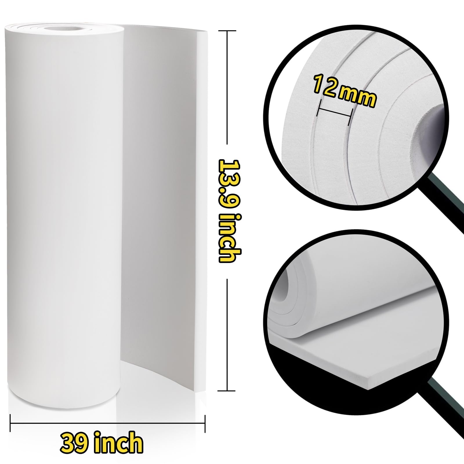 White eva foam:13.9 x 39 inches, 12mm thickness,easy to cut,bend,glue,heat,molding,color,etc.