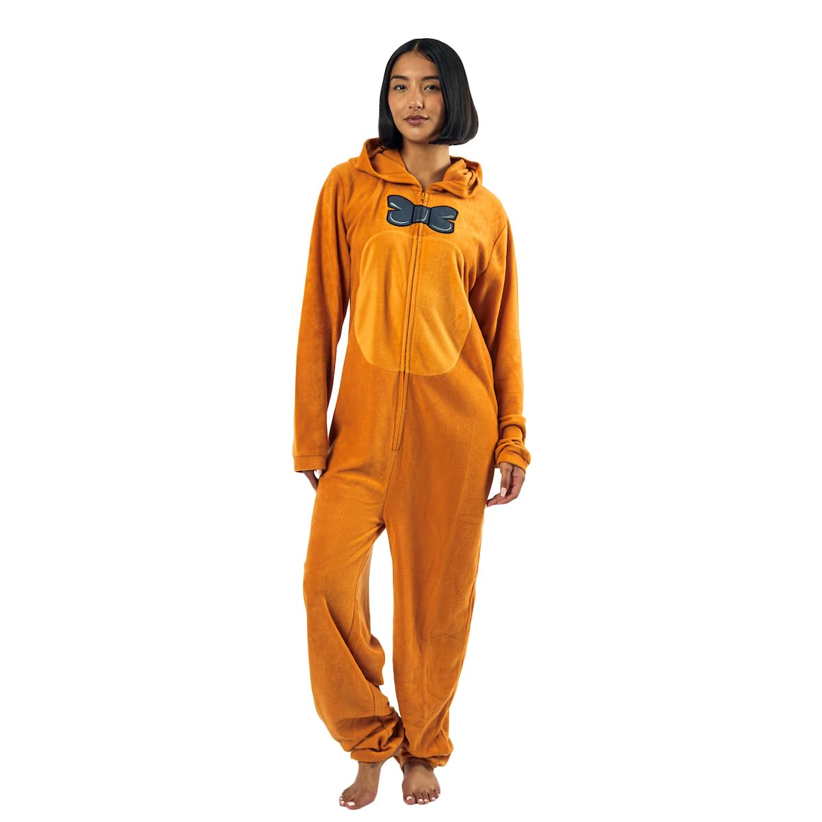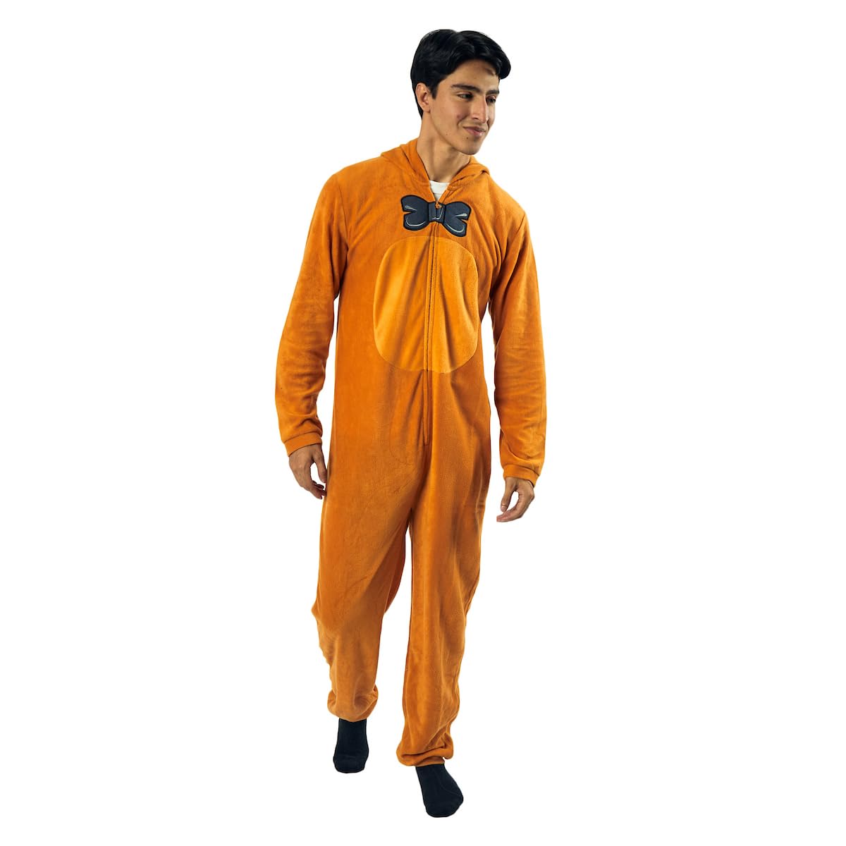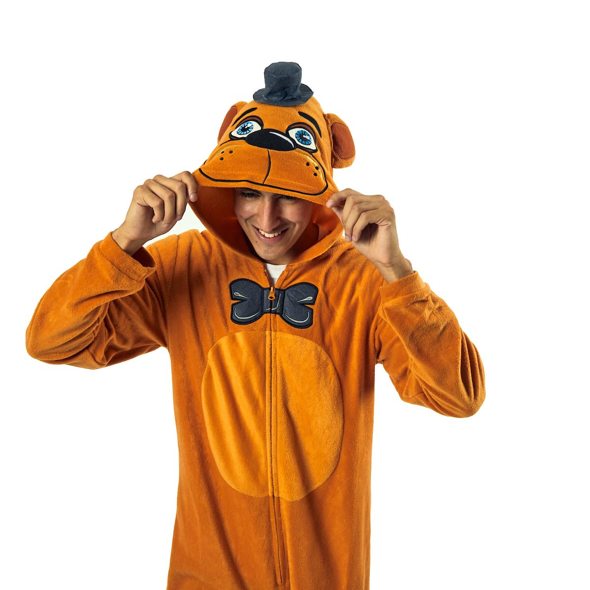Custom Design: This union suit replicates Freddy Fazbear's look with his face, ears, and top hat on the hood, and a bow tie graphic at the zipper top. It offers a playful way to show off your love for Five Nights at Freddy’s.