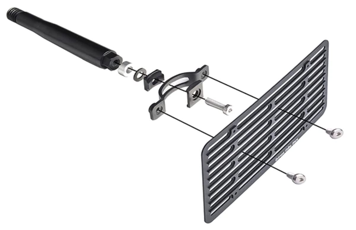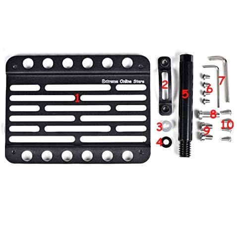 Made out of High Quality T6061 Aircraft Aluminum. Multiple mounting location available to avoid license plate from blocking intake vents or light beam. Oval mounting adapter included for license plate angle adjustment. Hardware included: License plate holder x 1 Oval mounting adapter x 1 7mm Spacer x 1 (for more clearance if needed) Rubber washer x 1 (prevent the unit from loosening) T6061 aircraft aluminum tow rod x 1 License plate bolt x 4 Hex Wrench x 2 Hex Head screws x 3