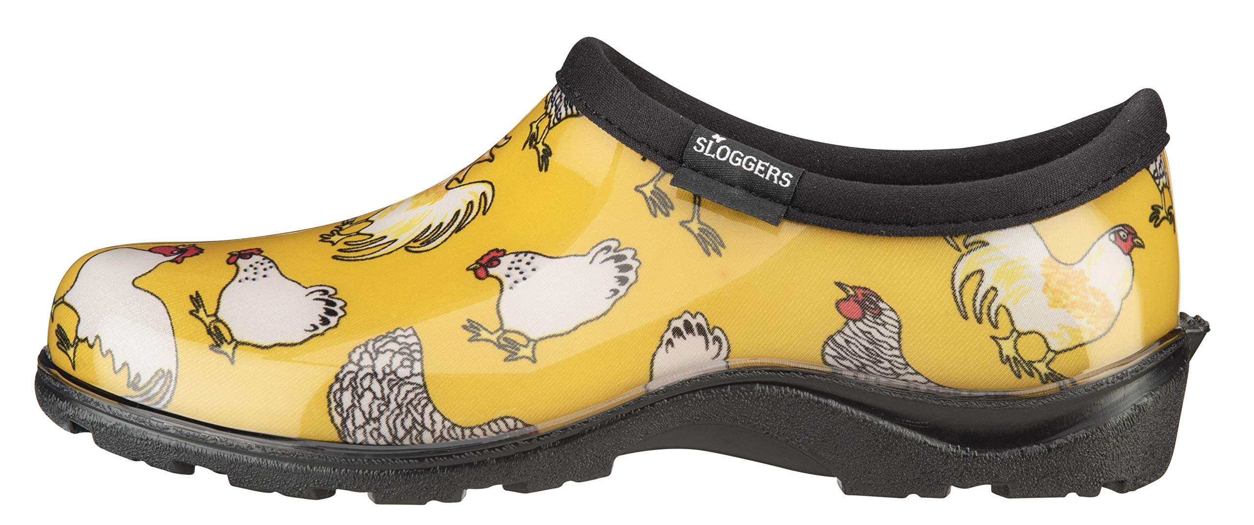 Description Product Description Designed with a honeycomb heel section that not only reduces weight, but also adds a spring to your step. Sloggers clogs, shoes, ankle boots and rain boots come with “All-Day Comfort” premium insoles to keep your feet supported all day. Sloggers signature deep lug tread provides the same stability and support as a real work boot. Made with 90% recycled material. Sloggers are easy to care for and clean. Hose them off or wash off in the sink. Remove insole to airdry. Amazon.com Cultivate all the enjoyment you can from your garden in the Midsummer garden shoe from Sloggers. Brilliant floral design meets mud- and puddle-proof construction so you can get out there after a refreshing spring shower and stay decidedly un-soggy. A low-cut ankle offers range of motion for easier kneeling and squatting as you work the soil. From the Manufacturer Women's Garden Shoe Midsummer, 6, (Black), Ea.