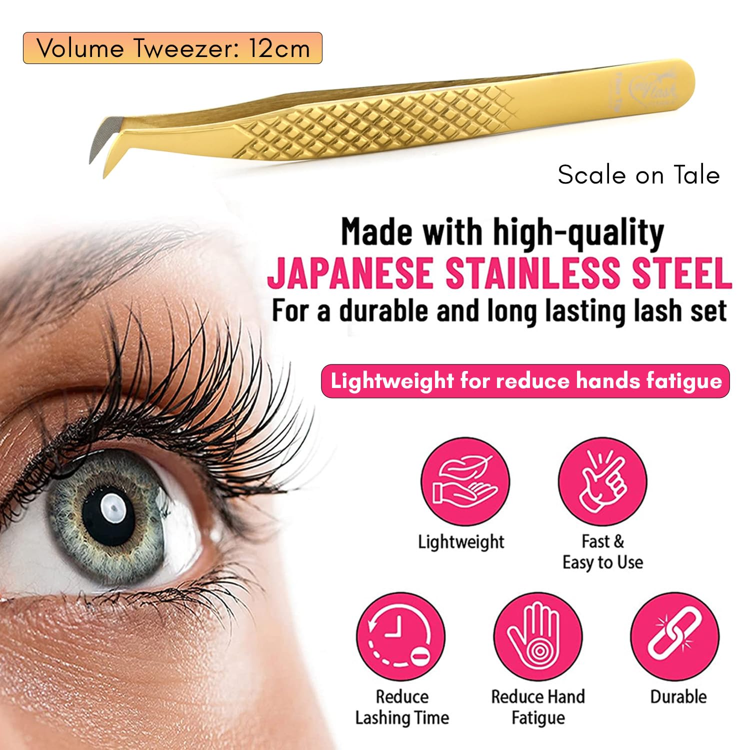 Mega Volume Fiber Grip Lash Tweezer is engineered for professionals demanding superior performance and control. The fiber boot tip delivers ultra-precise grip, making it easy to create flawless mega volume fans and isolate lashes with accuracy. The diamond grip handle provides a non-slip surface, ensuring comfort and steady handling during long lash sessions. Made from premium stainless steel, this tweezer is rust-resistant, lightweight, and easy to clean, making it suitable for both salon and home use. Perfect for all lash extension techniques, including mega volume, classic, and volume styles. Lash artists and beauty professionals worldwide trust this tool for its durability, balance, and unmatched precision. Upgrade your lash toolkit with tweezers designed to enhance speed, accuracy, and client satisfaction. Achieve salon-quality results for every eyelash extension application.
