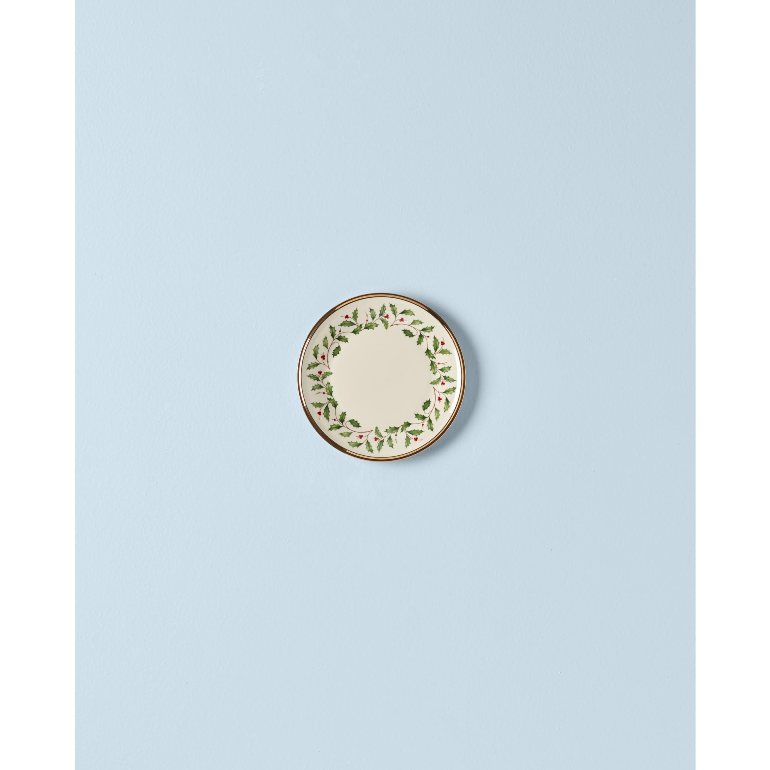 Amazon.com A bough of holly and a band of gold add holiday cheer to this fancy bread and butter plate from Lenox. The 6-1/4-inch plate is crafted of fine ivory china and the gold rim is 24 karats. Give it as a fun holiday gift or use it to enhance a holiday dinnerware collection. The plate matches other pieces in the Lenox Holiday pattern, but it can also augment any fine china dinnerware used in the holiday season. Functional as well as beautiful, the plate is safe to put in the dishwasher and comes backed by Lenox's replacement or refund policy. --Betsy Herring Product Description Part of the time-honored Lenox Holiday Dinnerware Collection, our holly and berry motif adorns the surface ofThis Holiday Bread Plate. Crafted from porcelain with a rich, 24-karat gold trim for an opulent, holiday-themed tableware addition.At Lenox, we strive to make the daily moments in your life a bit more special. Inspired by heritage and designed for now, we bring a rich history of craftsmanship to modern day life. We’ve been a part of homes for over 130 years. Each time you buy Lenox, you are buying a versatile and timeless piece crafted with our century-long commitment to quality, artistry and beauty. Whether you’re gathering the family for dinner, grabbing a midnight snack for yourself in front of the TV or having friends over, Lenox is for real moments that last on products that are meant for living. A bough of holly and a band of gold add holiday cheer toThis fancy bread and butter plate from Lenox. The 6-1/4-inch plate is crafted of fine ivory china and the gold rim is 24 karats. Give it as a fun holiday gift or use it to enhance a holiday dinnerware collection. The plate matches other pieces in the Lenox Holiday pattern, but it can also augment any fine china dinnerware used in the holiday season. Functional as well as beautiful, the plate is safe to put in the dishwasher and comes backed by Lenox's replacement or refund policy. Betsy Herring