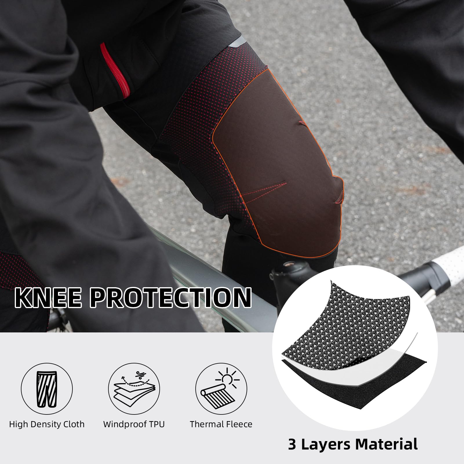 ERGONOMIC CONSTRUCTION & 3D Tailor:High technology stitching and special elastic fabric on the knees release the tension & pressure while cycling or having sports.Perfect for cycling,winter bike commute, running,walking or other outdoor sports.