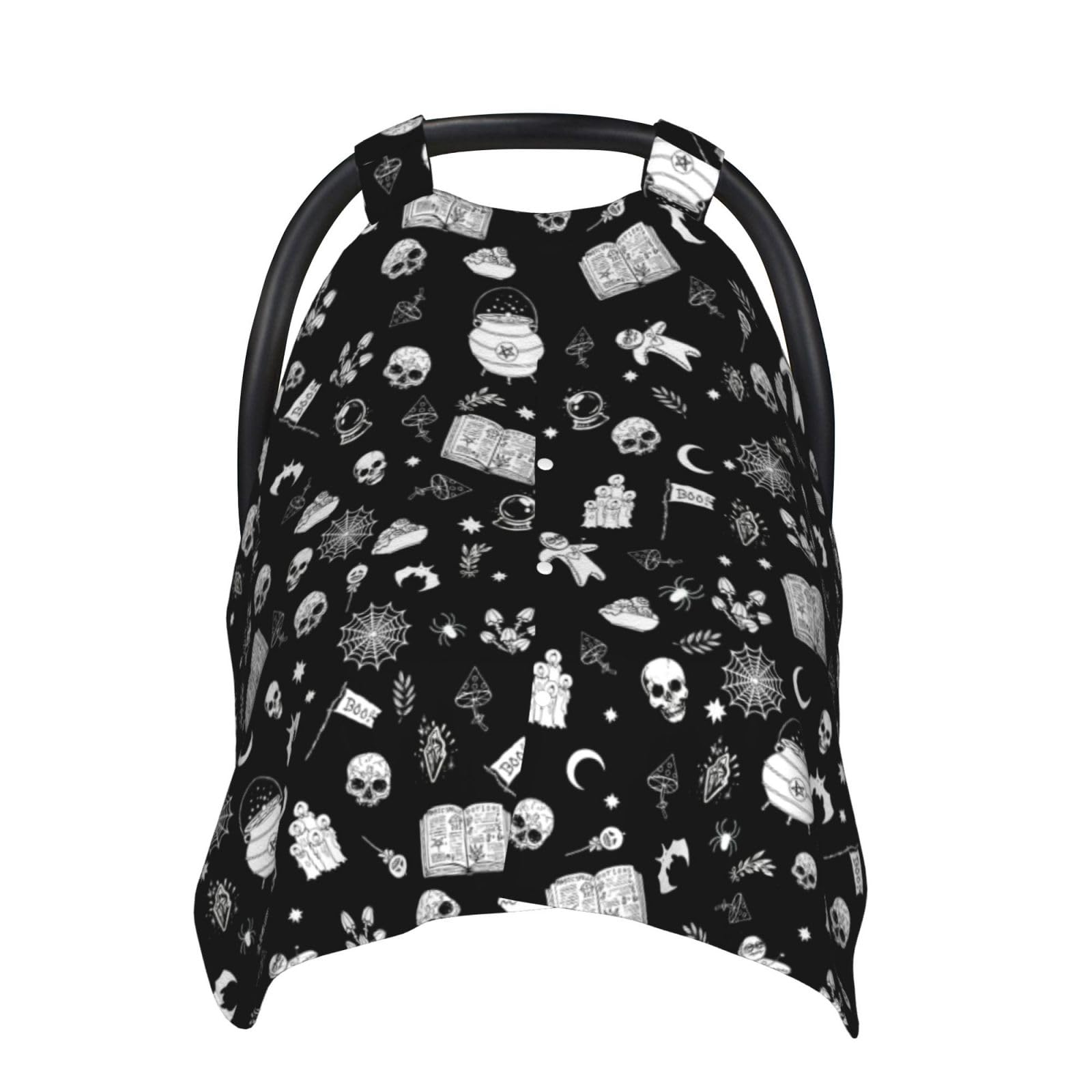 Why Choose This Seat Cover? ★ Less disturb - Opening in the middle on the front allows you to check on the baby easily. The button opening makes less disturb than other zipper or fully enclosed seat cover. ★ Multifunction- Mom can take off the seat cover as nursing cover to breastfeed baby in public without embarrassment. You only need this baby car seat cover, no need to carry extra nursing covers, blankets, and mats. ★ Cool Design: The gothic design makes sure the seat cover is unique. Fit for mom who love the goth style. Specification Weight: 0.78lb Size: 39"x27.5"(100x70cm) Pattern: Goth Material: Polyester, plush Use: Seat cover, nursing covers, blankets Washing method: Hand wash, machine wash
