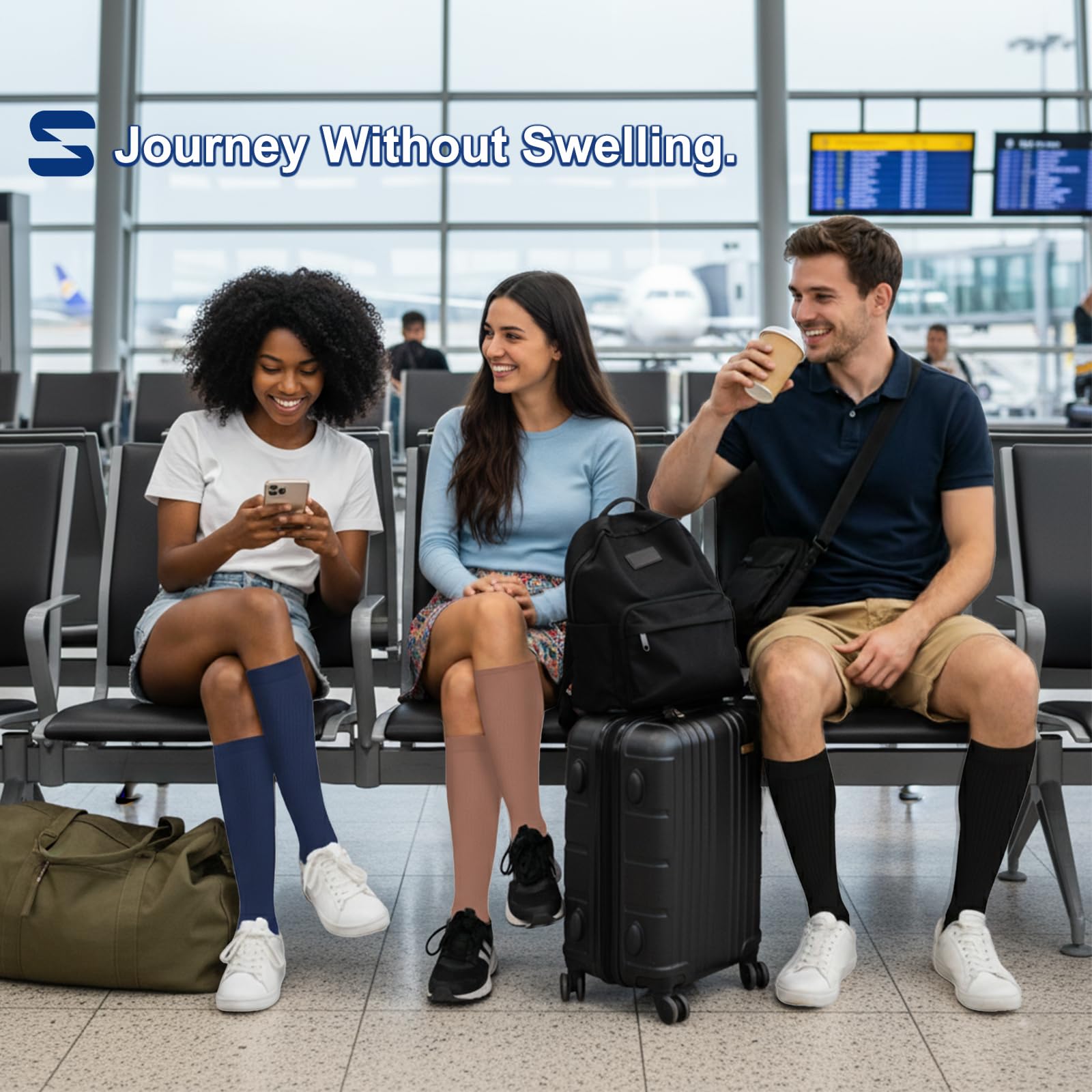 Comfortable Design - Sooverki graduated compression socks for women and men circulation provide 15-20 mmHg of gradient compression, which are ergonomically designed. Prevention and relief of minor varicose veins, relief of tired aching legs, relief of minor swelling of feet and legs. The inner design of the socks is very soft and friendly to the toes. The material is breathable and comfortable, which can keep your feet dry.