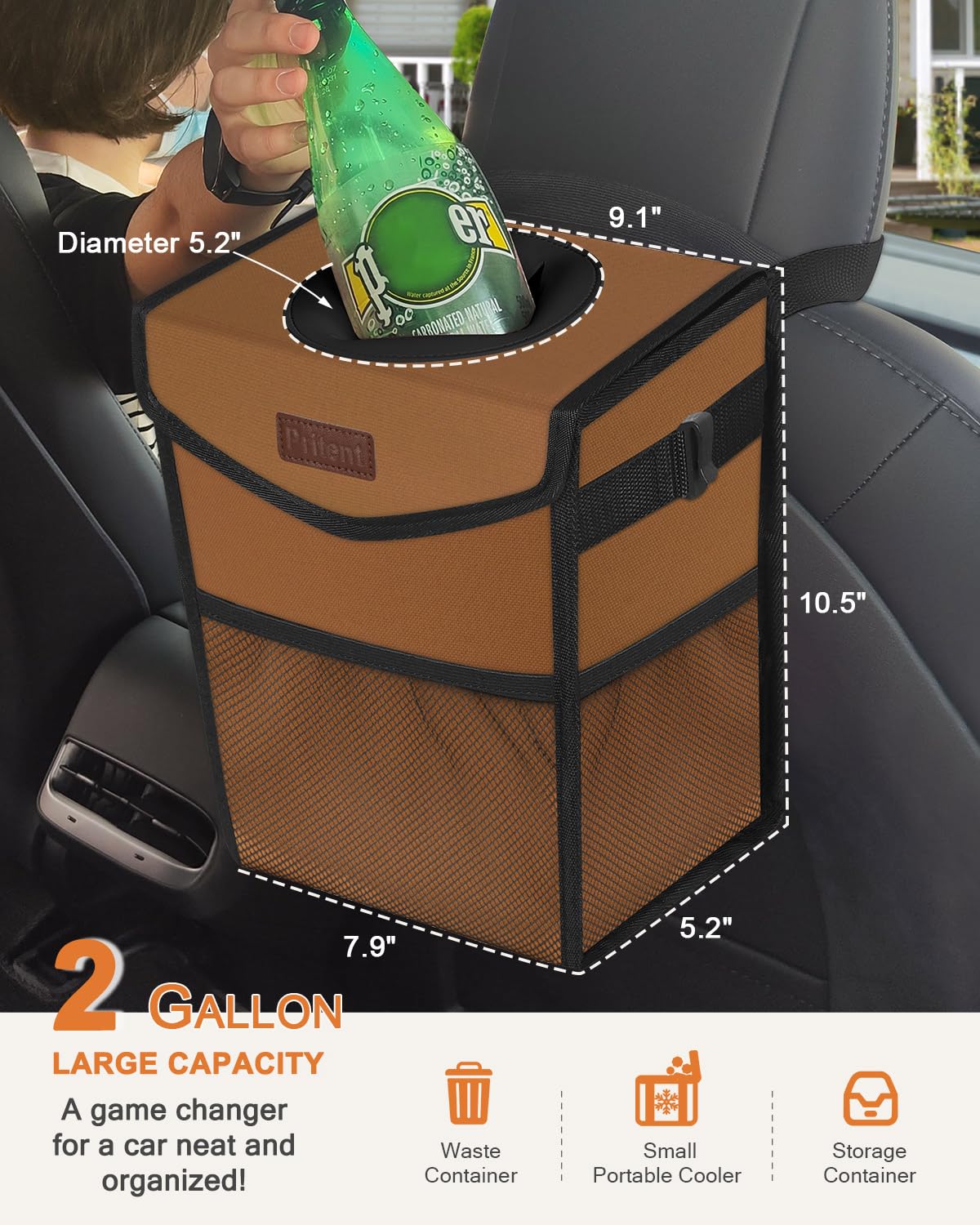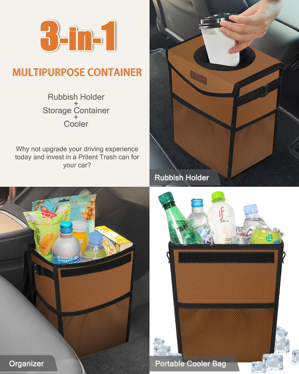 3-in-1 Multipurpose Container With 2-gallon Capacity:A game changer for a car neat and organized! It is not only a rubbish holder and car storage organizer, but a nice portable cooler bag for your car. Mesh pockets provide convenient storage places for things like tissues, extra trash bags, and cleaning wipes. The mesh pockets can hold anything you want to keep within arm’s reach in your car. Why not upgrade your driving experience today and invest in a Pritent Trash can for your car?