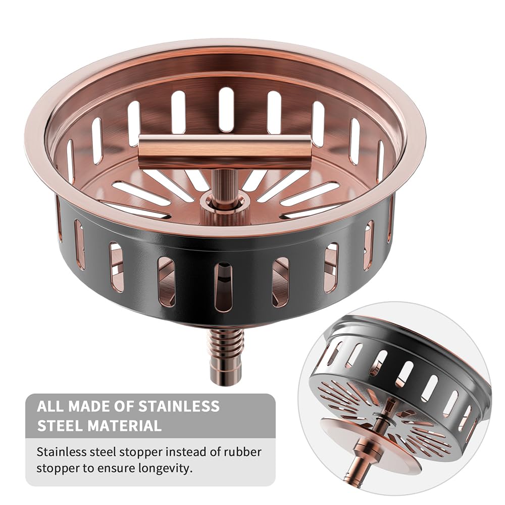 STAINLESS STELL SINK DRAIN: The body of this copper sink drain are all made of durable stainless steel material. And stainless steel stopper instead of rubber stopper to ensure longevity. Durable and dependable, rustproof and no leaks