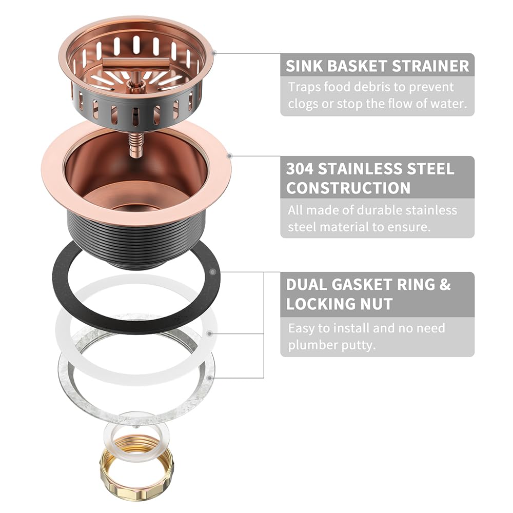 EASY TO INSTALL: Package includes all parts needed—two gaskets/washers, mounting nut, and lock nut. No plumber's putty required. KONE copper kitchen sink drain kit installs in minutes. Please contact us if you need help