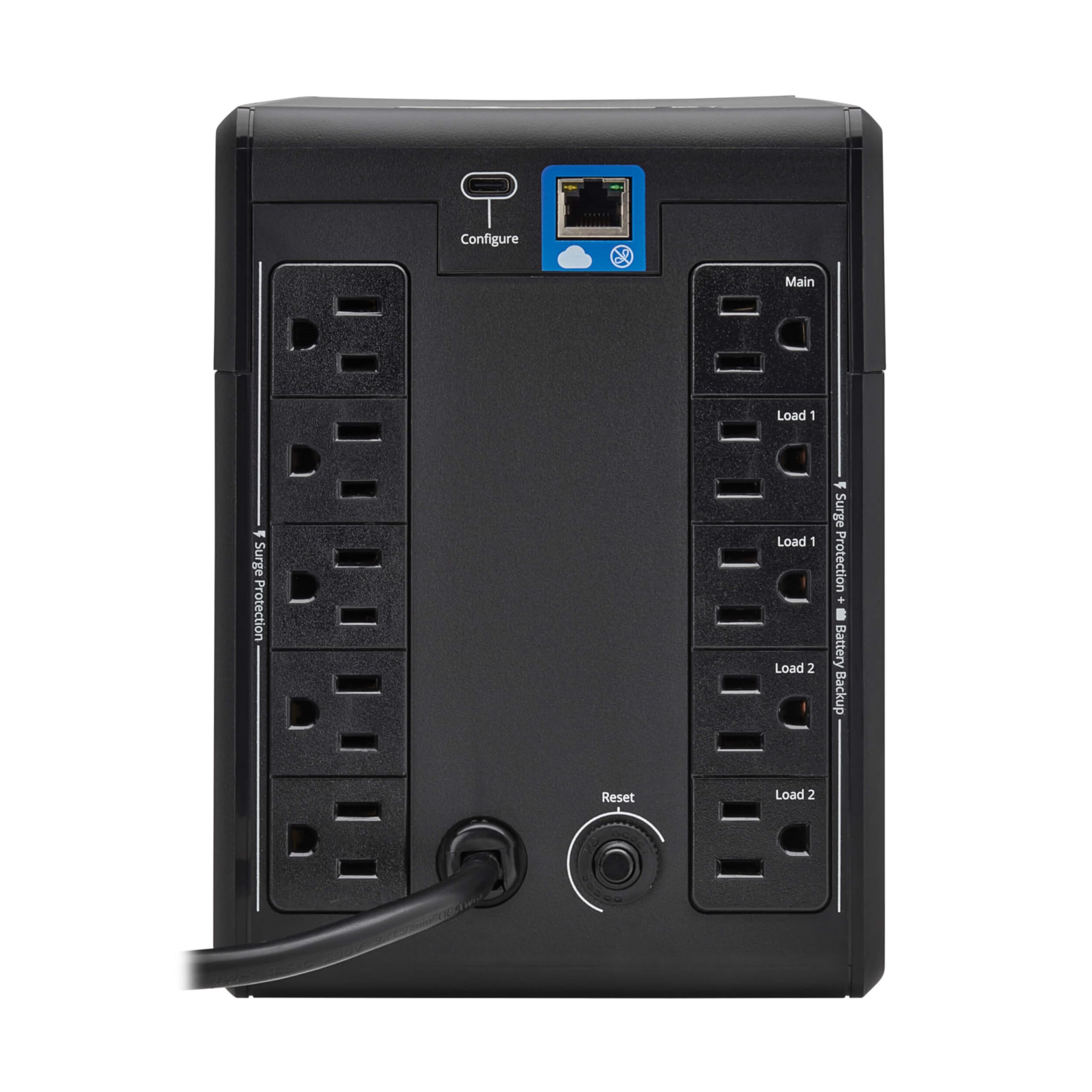 CLOUD-ENABLED NETWORK UPS: Manage your tech from anywhere. Configurable UPS alerts notify you through email or text. Silence alarms, shutdown or restart equipment, and control outlet banks through web browser or Eaton's free Brightlayer app.