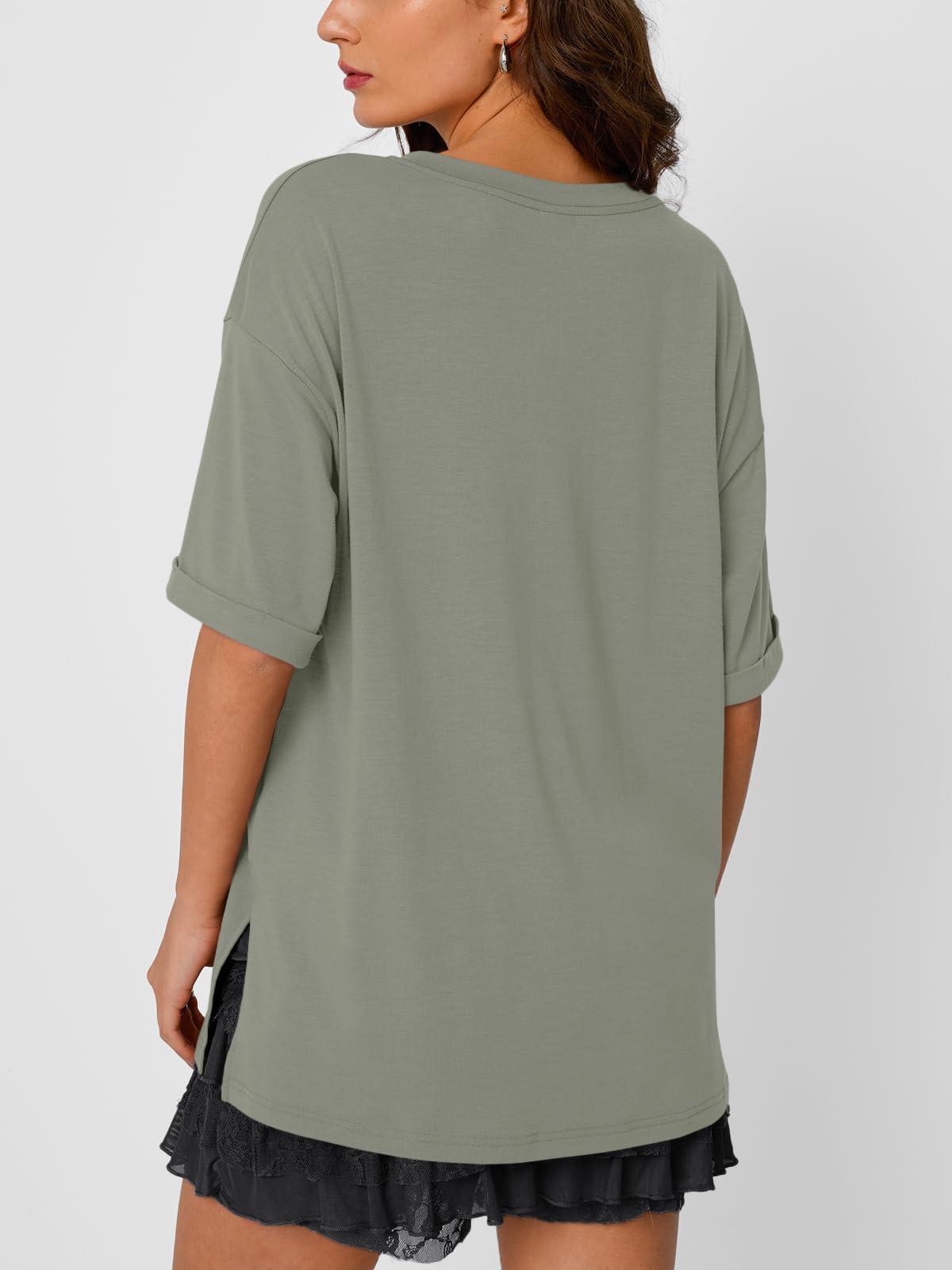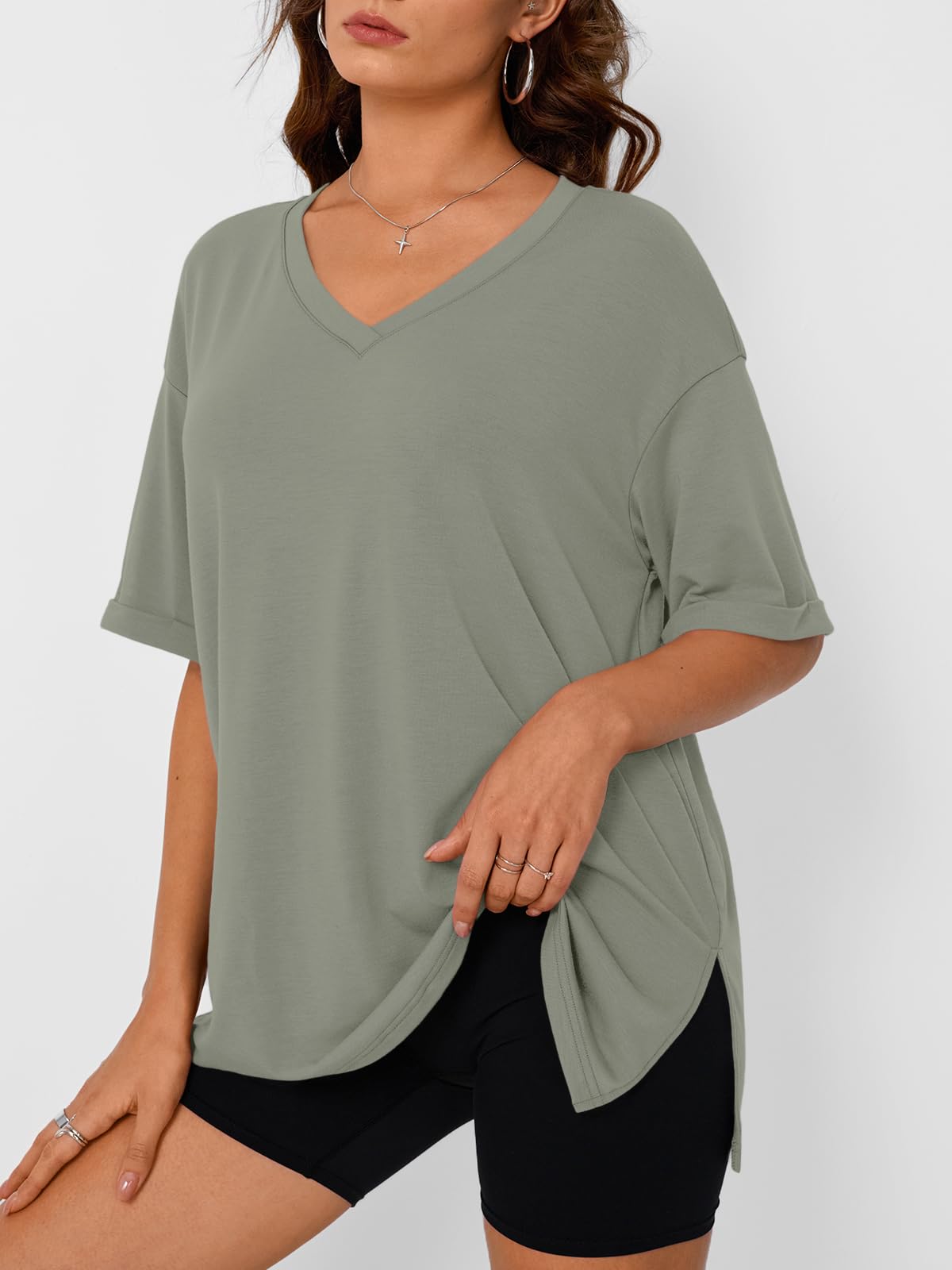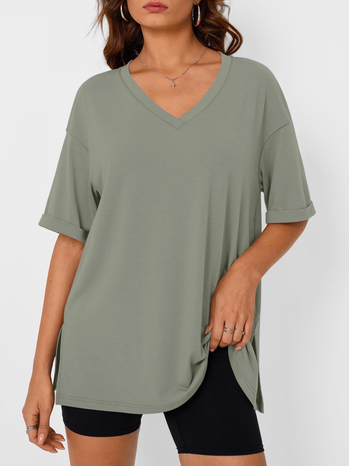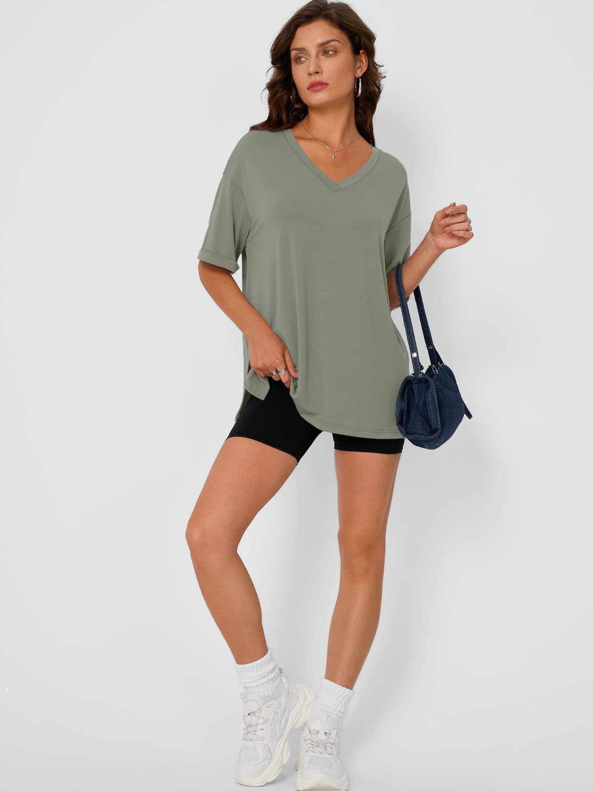 Design: Oversized tshirts for women, with loose fit design, v-neck, short sleeve, simple solid color style, with drop shoulder sleeves, fashionable and classic, casual style, suitable for spring and summer.