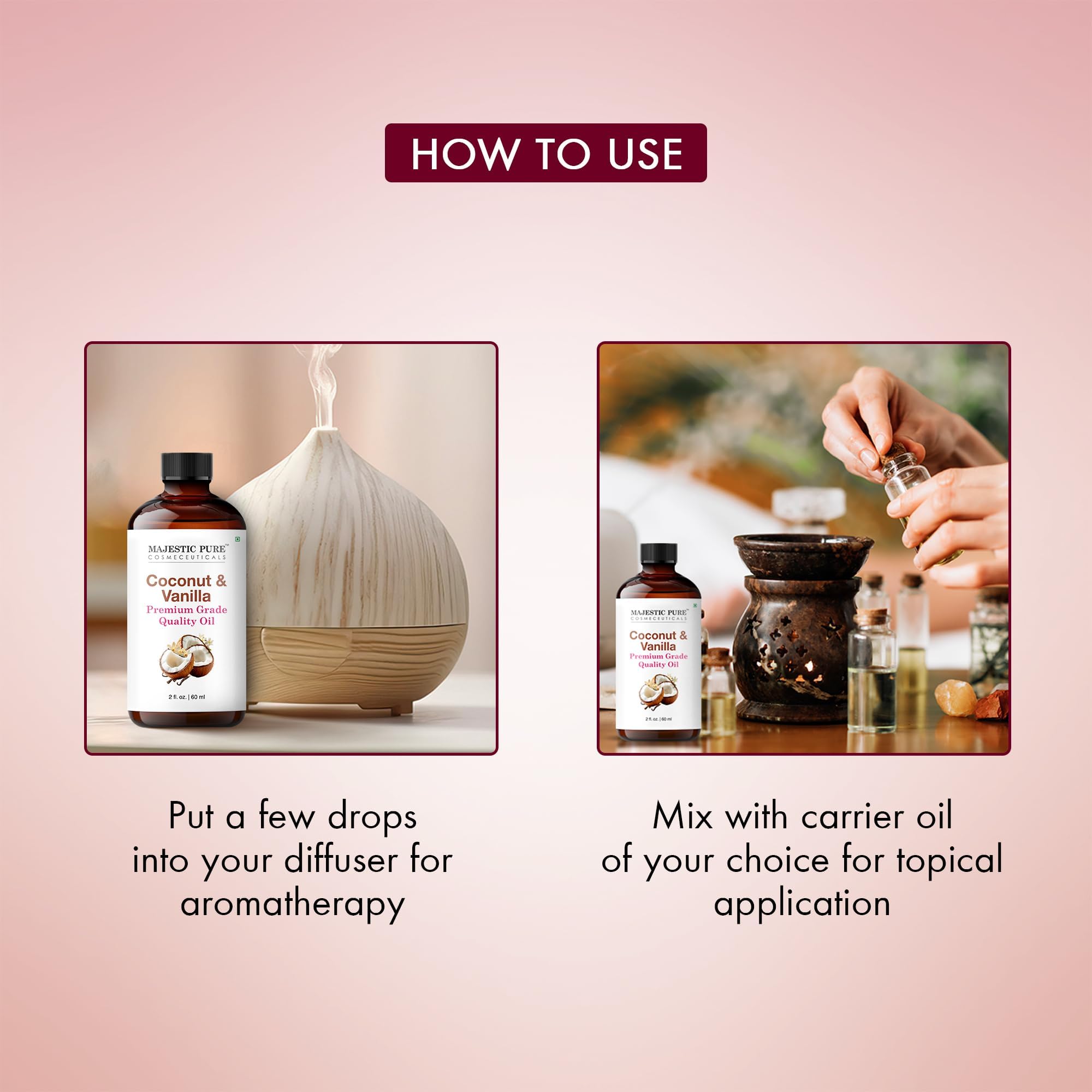 Perfect for Diffusers: Use as a fragrance oil for diffuser or in essential oil diffusers for aromatherapy to fill your room with a calming and inviting scent inspired by creamy vanilla and fresh coconut.