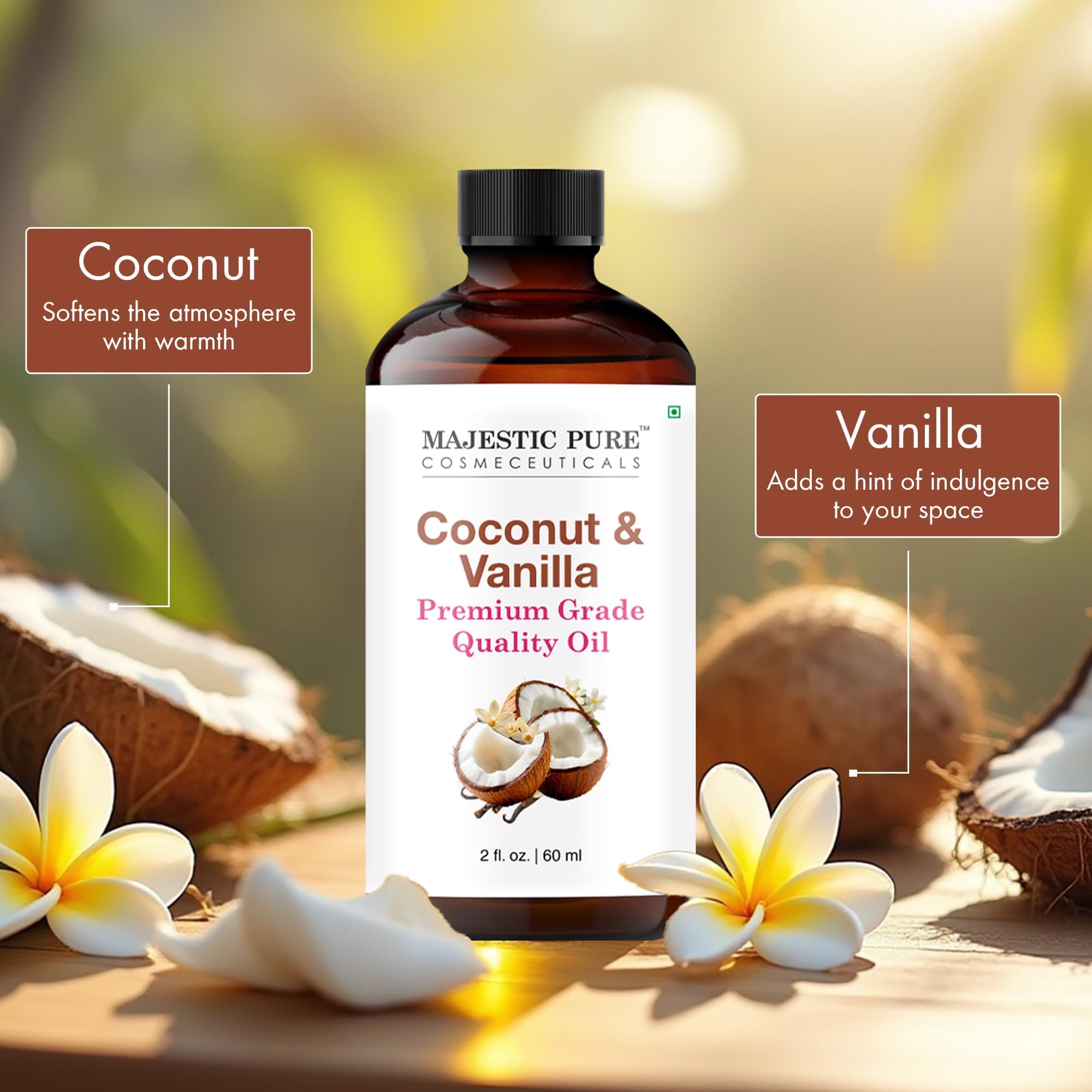 Blissfully Sweet & Creamy Scent: A luxurious blend of vanilla bean oil and coconut fragrance oil that wraps your space or skin in a warm, tropical embrace, perfect for daily indulgence or soothing aromatherapy sessions.