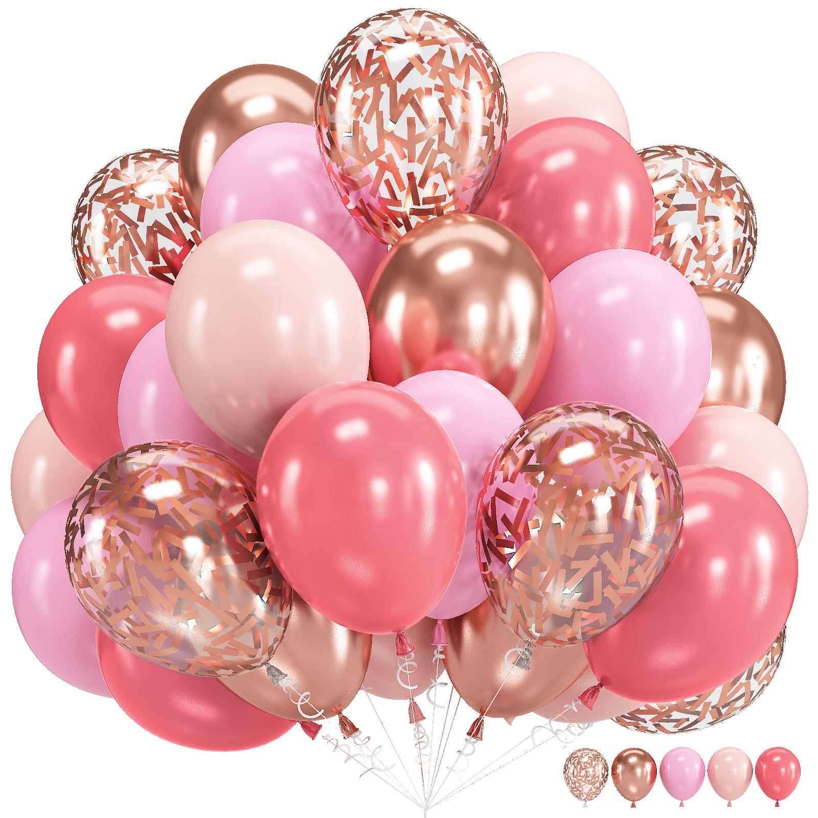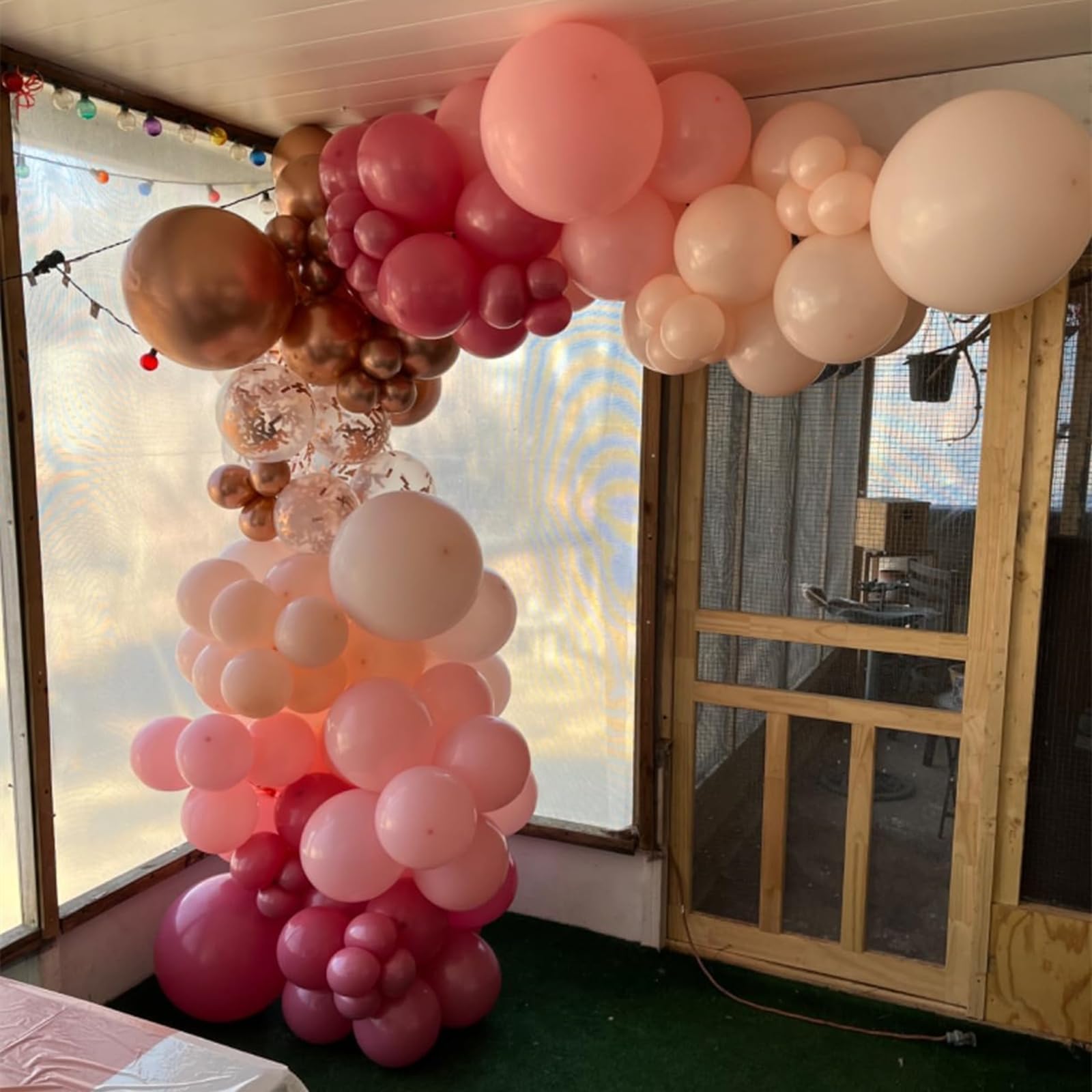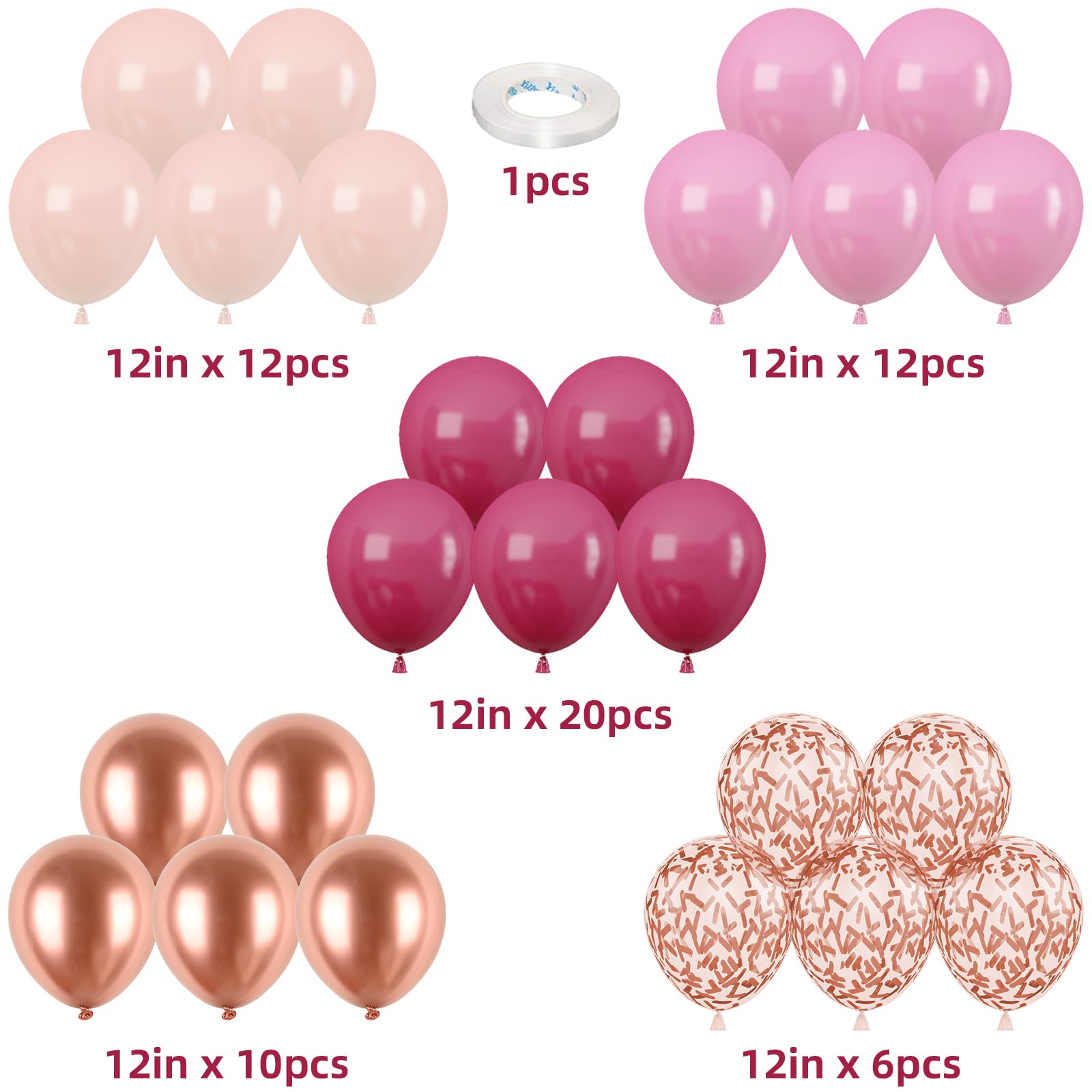 WHAT YOU GET: Dusty rose pink balloons set includes 60pcs latex balloons: 20pcs 12inch retro dusty pink balloons, 12pcs 12inch pastel pink balloons, 12pcs 12inch pastel orange balloons, 12pcs 12inch metallic rose gold balloons, 6pcs 12inch rose gold confetti balloons, 1 roll of ribbon, ideal for making rose balloon garland, rose balloon arch