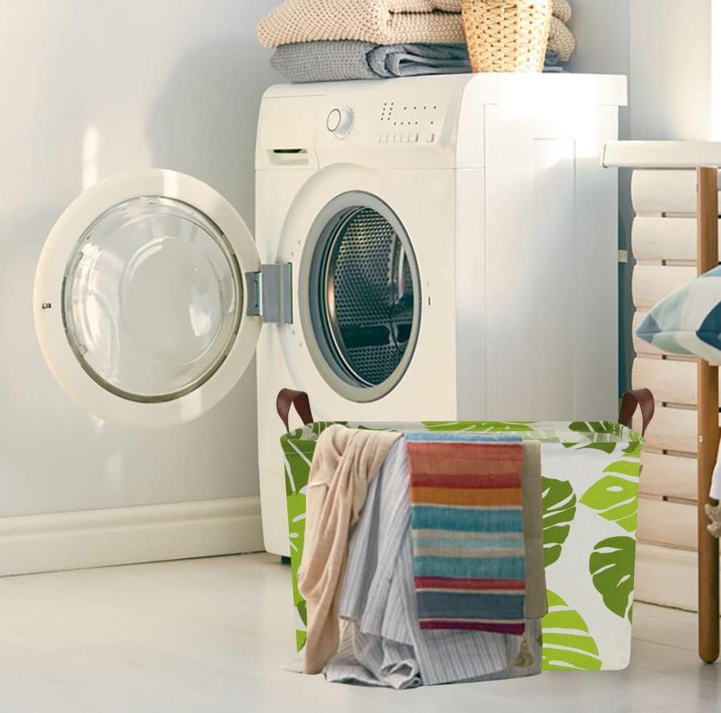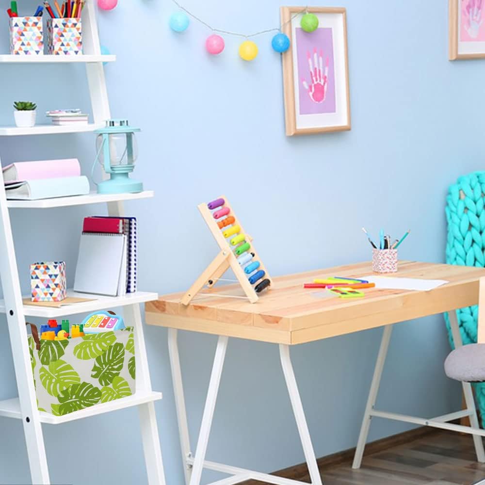 β MULTI-PURPOSEοΌCanvas tropical Storage Bins are a perfect way to accessorize, organize, and store items at home, office Ideal toy bins or shelf baskets for cube storage organizer shelves, cubbies, bookcase, desk, or floor. Sturdy wire frame stands up to everyday use in shelves, kids' home store, bathrooms, bedrooms, laundry rooms or closets.