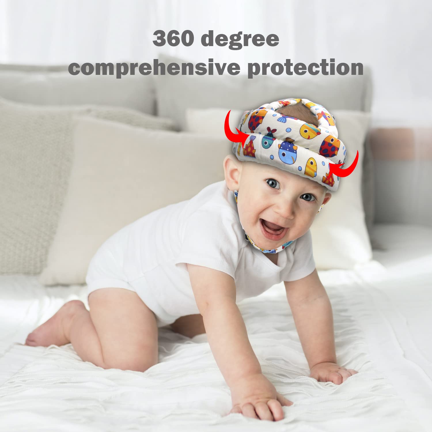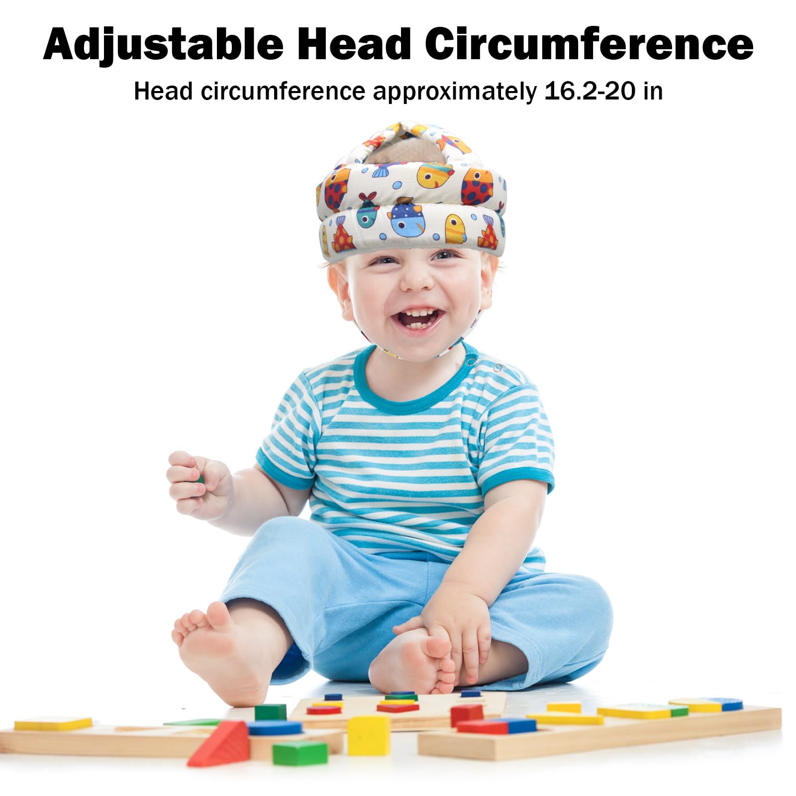 【Adjustable & Secure Fit】 It'll fit the baby's head with a circumference of 16.2-20 inches for a snug yet comfortable fit. The secure buckle prevents slipping, while breathable padding adapts to any head shape—ideal for growing infants needing reliable protection.