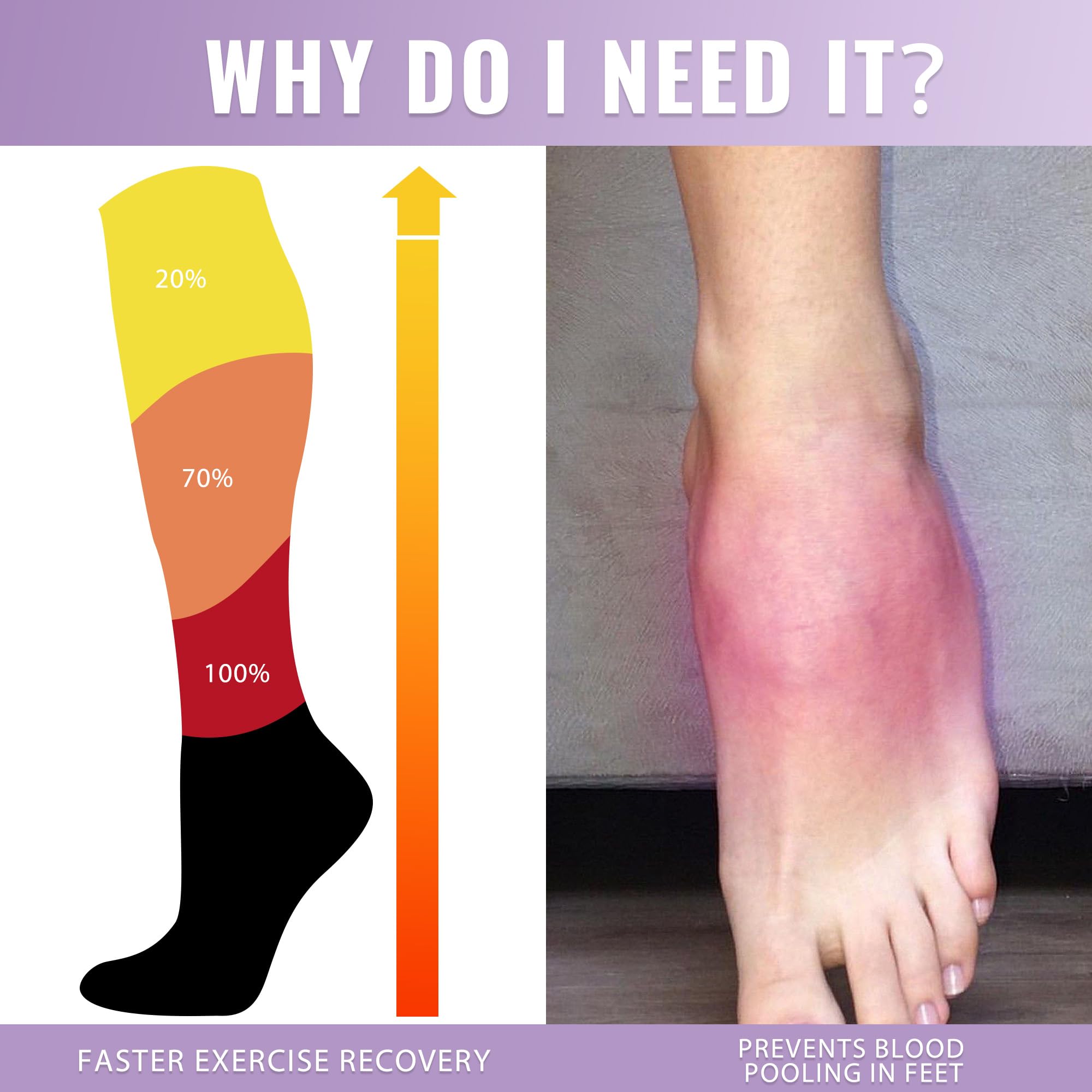 SOCKS FOR WOMEN: 20-30mmHg circulation compression socks are with moderate compression and are recommended by doctors and trainers. Nurse compression socks create the highest support pressure at the ankle and gradually decrease along the legs, making your legs more comfortable.