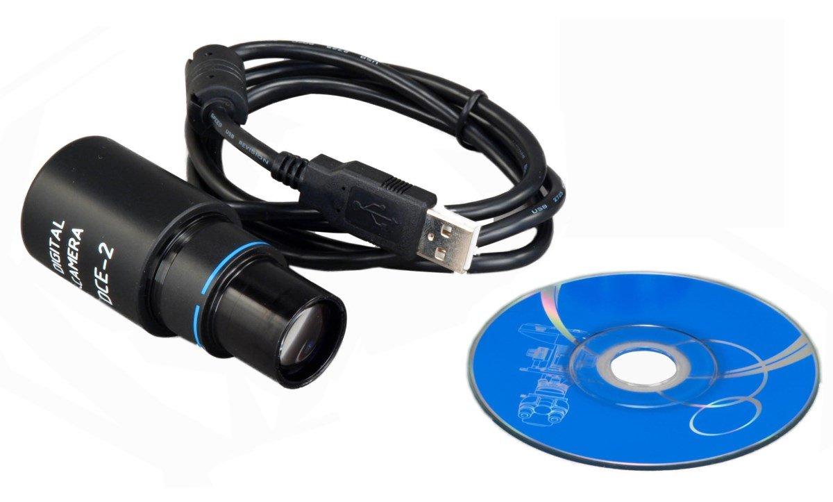 Digital camera: - true color 640 x 480 pixels - 0.45X reduction lens to get larger field of view - Software compatible with Windows XP/Vista/7/8/10, and Mac OS - Capturing microscope images, recording live video, measuring lengths, angles, areas, editing images