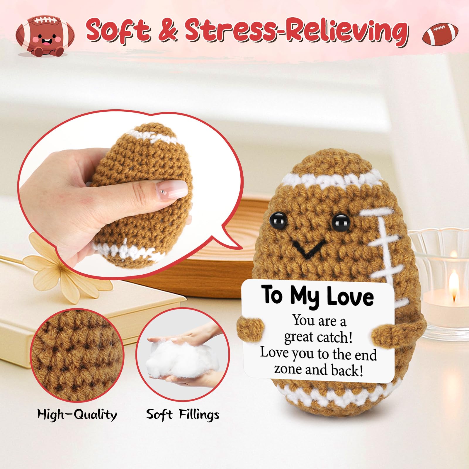 A Symbol of Our Love & Shared Interests- This mini crochet football is not just a decoration—it’s a symbol of the love and memories you’ve created together. Whether you share a passion for football or simply enjoy supporting each other through life’s challenges, this gift represents your deep connection and the moments you’ve shared as a couple.