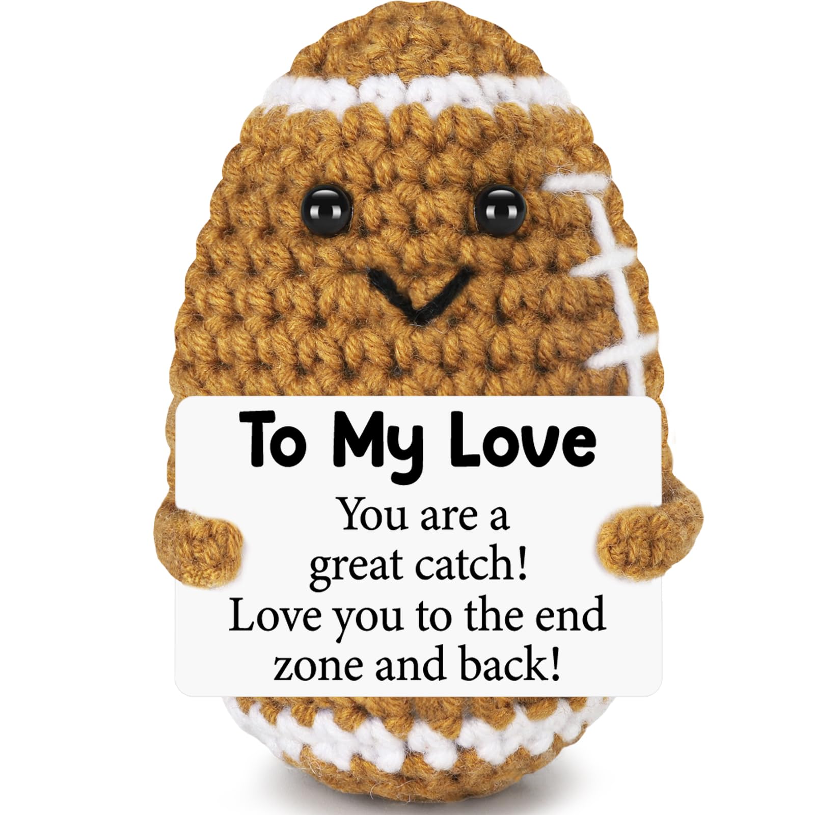 Motivation To My Love- Life can be tough, but with this mini crochet football, your partner will always have a little source of comfort and encouragement. Its soft, gentle presence reminds them that no matter the challenges, your love is always there to cheer them on, providing emotional value and strength when needed most.