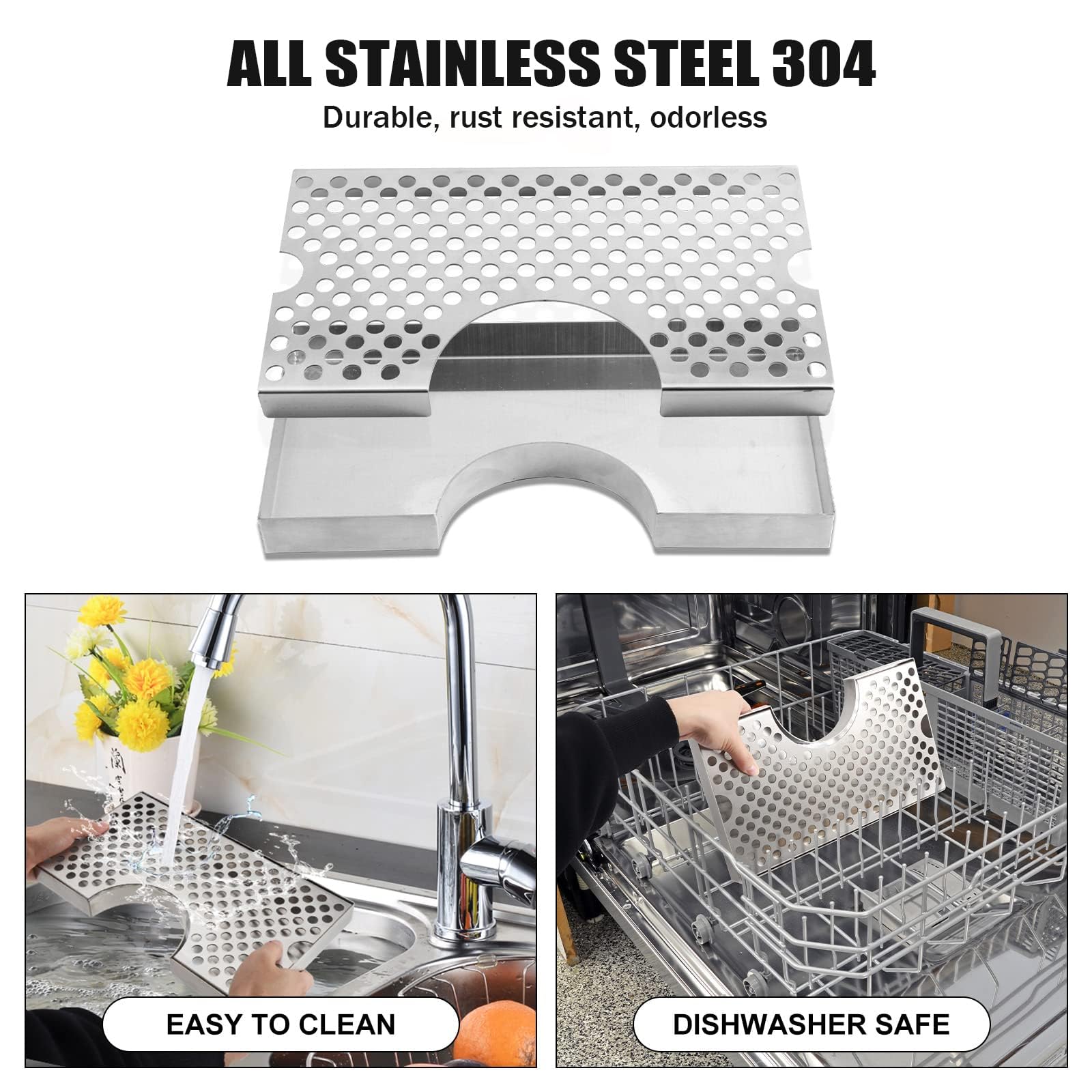 Easy to Use and Versatile Appliances: Compared with the soft PVC beer tap tray, this stainless steel drip tray can hold more liquid and foam, and can be easily moved to the sink. This beer tower drip tray has a 4.4'' wide semicircular cut that seamlessly fits the base collar of the 3” beer tower. 12" * 6.5 " beer drip tray can accommodate multiple beer cups, suitable for 1-3 taps beer tower