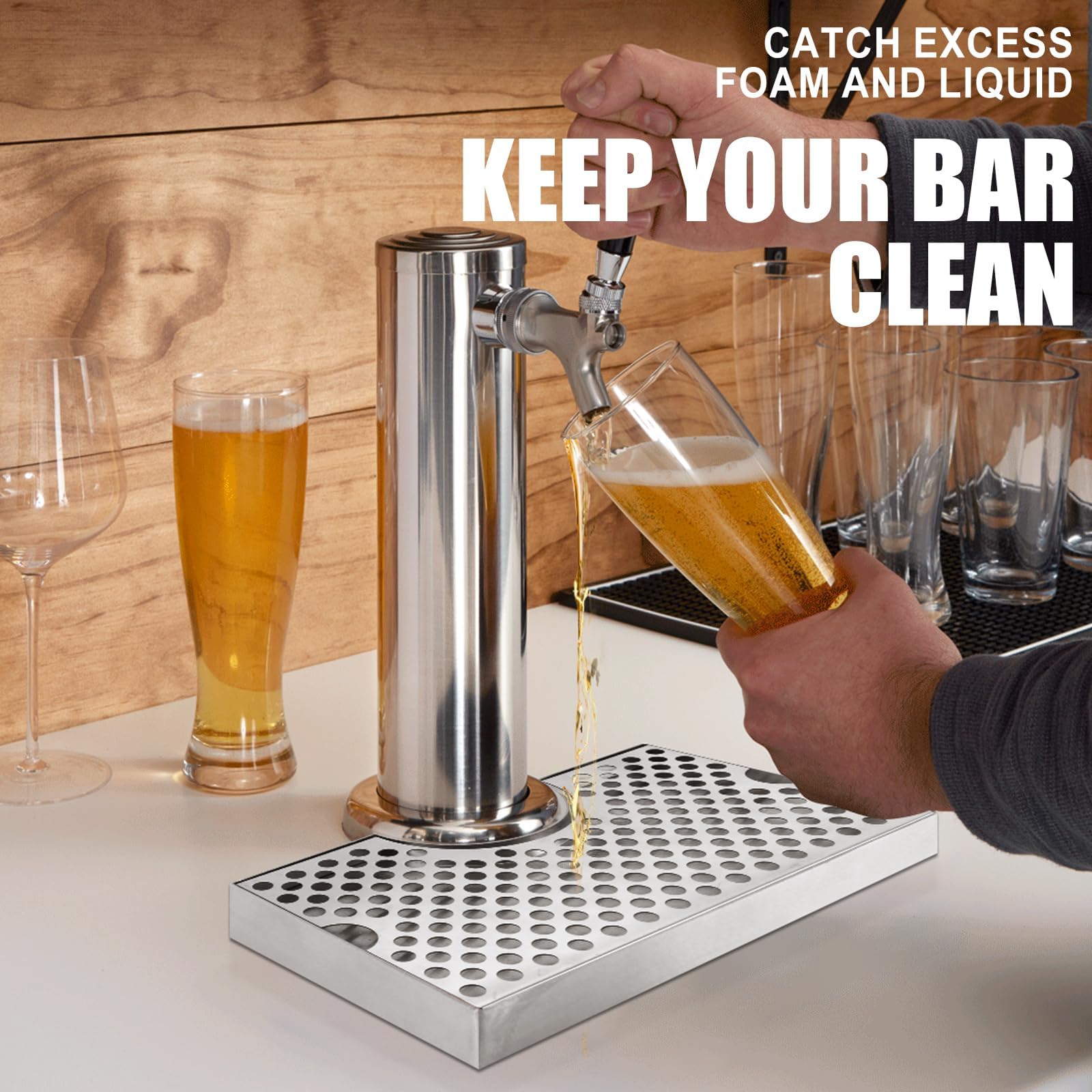 Keep Your Countertop Clean: The beer drip tray is a must-have kegerator accessories for any bar setup. Designed to catch any spilled or dripping beer from the tap, this keg beer drip tray ensures your countertop stays clean and tidy, preventing any sticky messes or stains from ruining your bar's aesthetic. The sleek and simple design of kegerator drip tray complements any bar setup